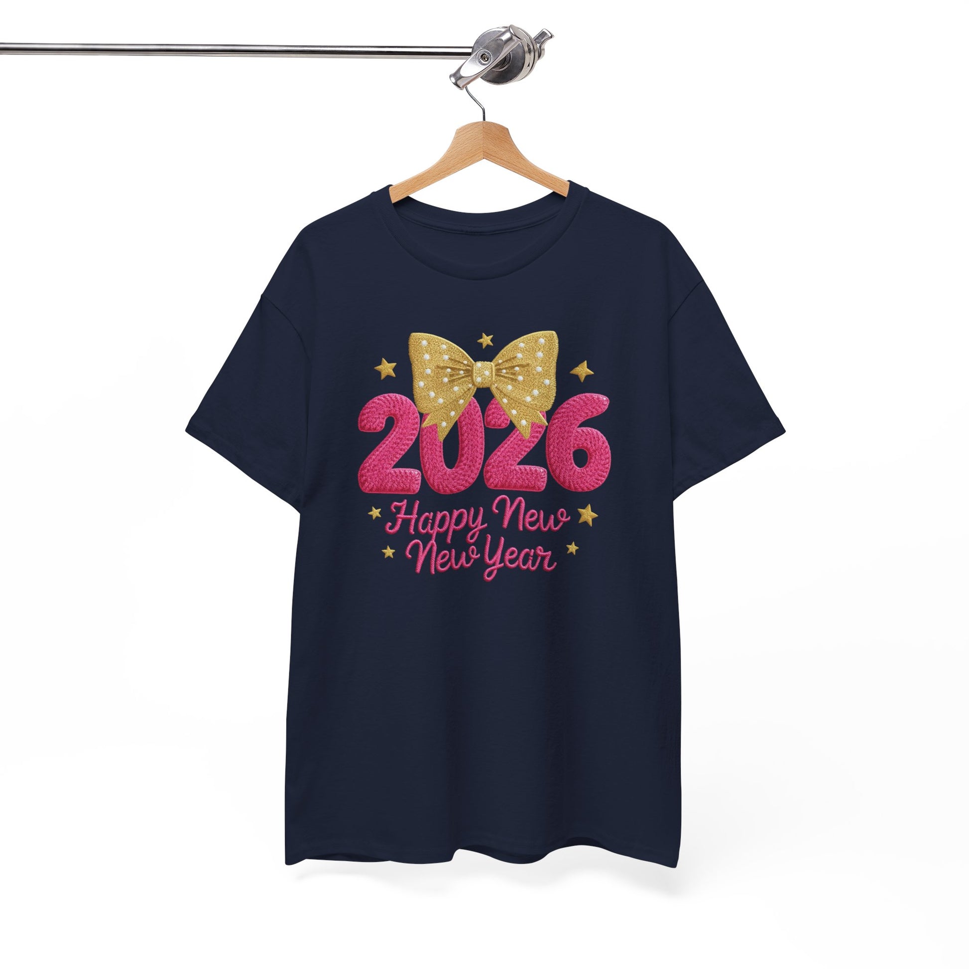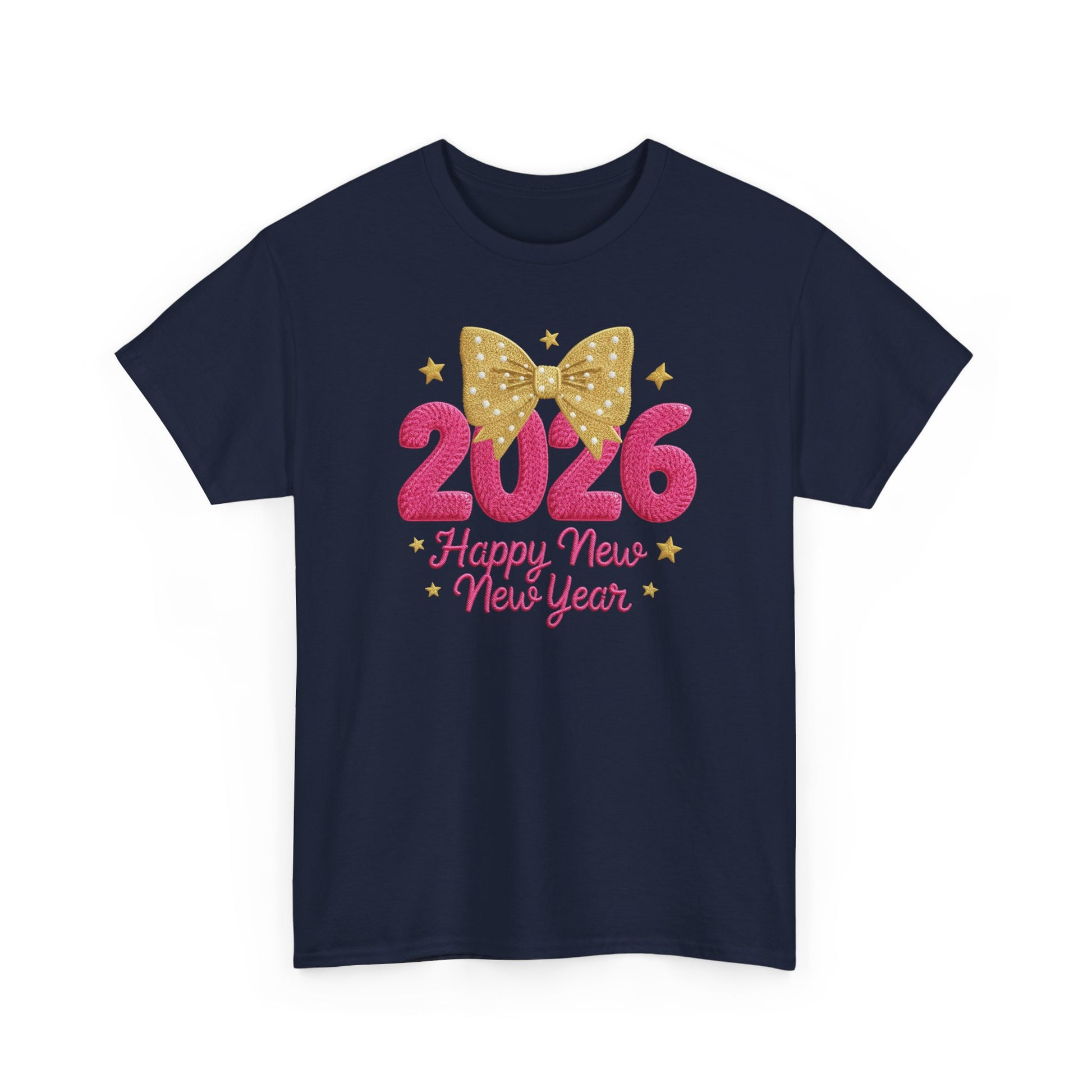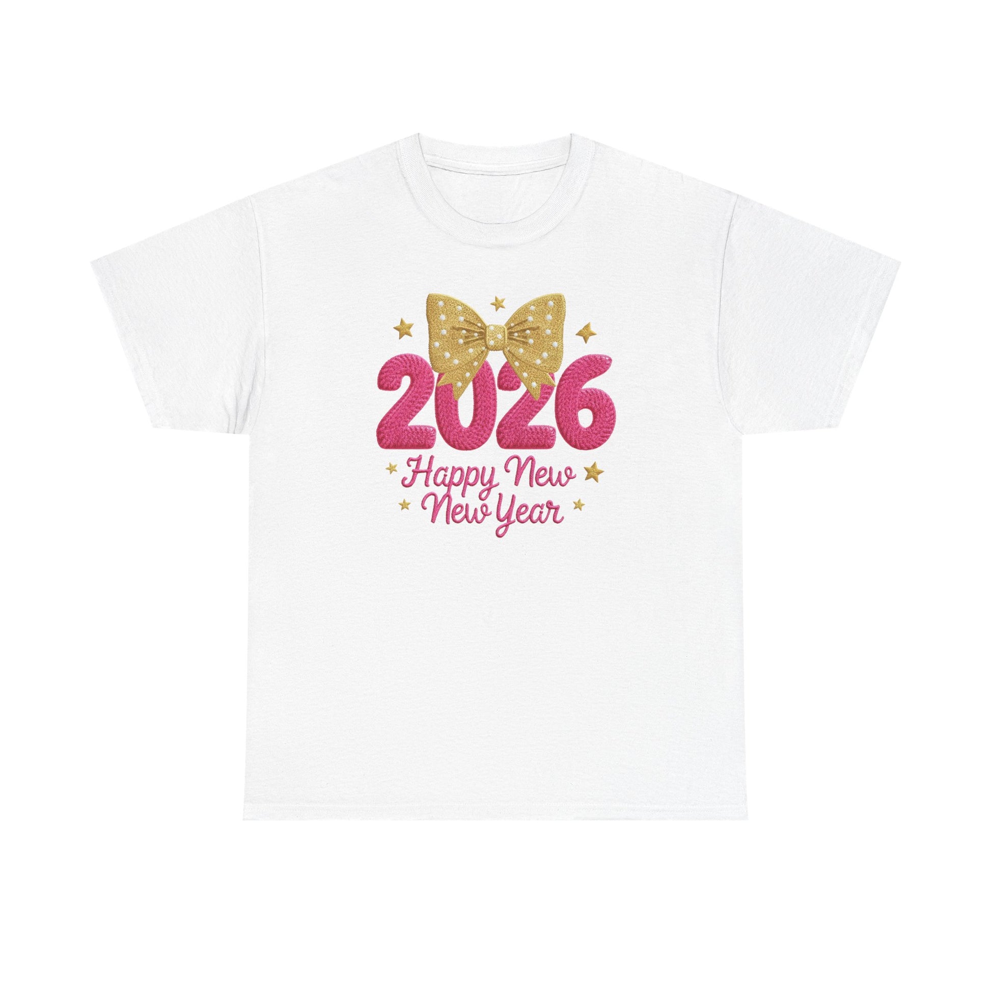 2026 Happy New Year T-Shirt — Pink & Gold Bow Celebration Tee