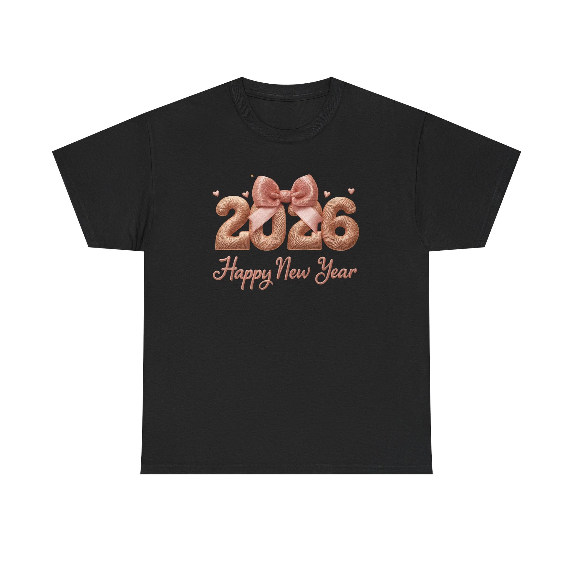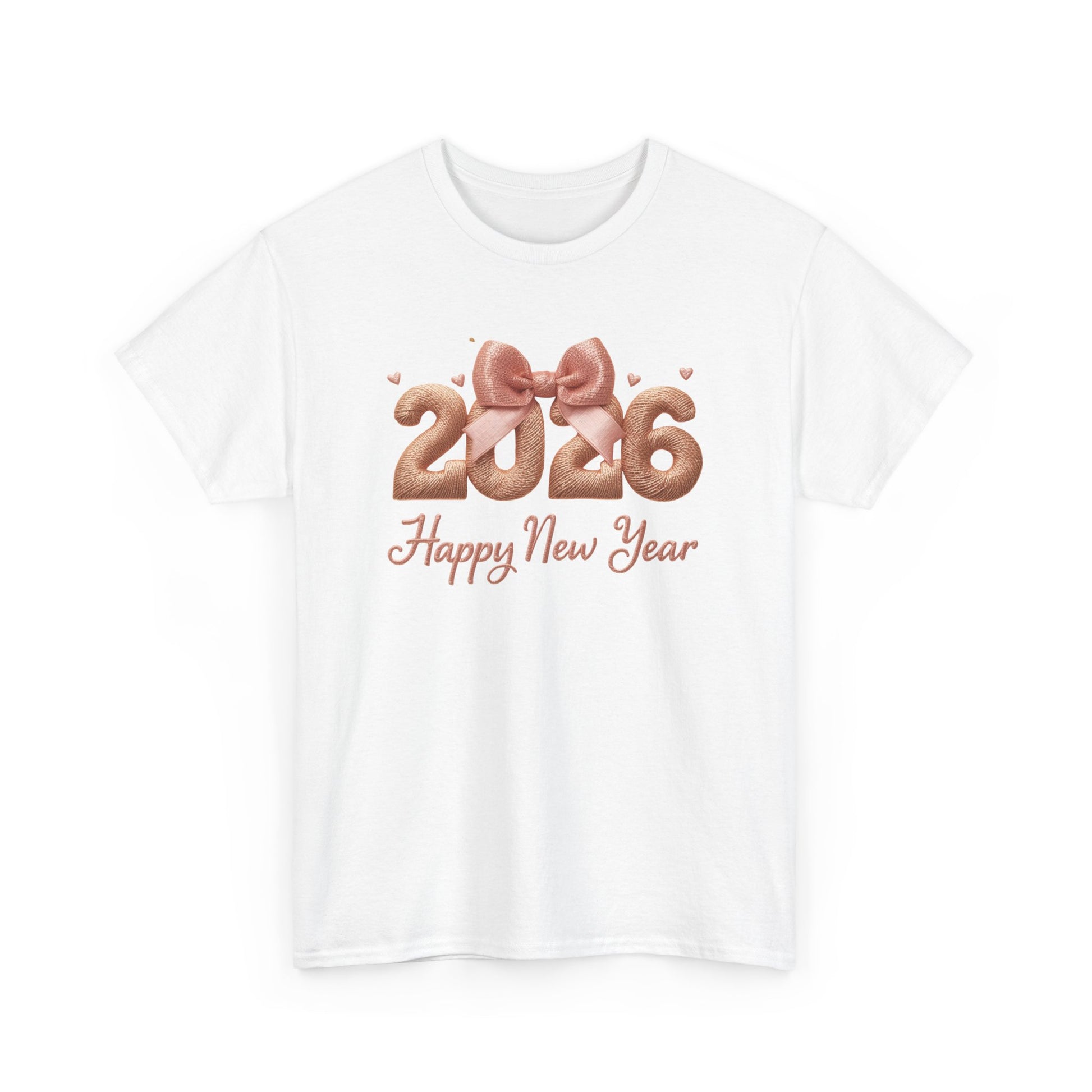 This soft, classic-fit tee brings a warm, celebratory note to New Year gatherings. A subtle rose-gold design—2026 shaped like glossy balloons tied with a satin bow—sits on a clean white canvas above a graceful “Happy New Year” script. The medium-weight cotton feels steady and breathable, the ribbed collar and taped shoulders hold shape through washes, and the tear-away label keeps the neckline irritation-free. Wear it to low-key house parties, midnight countdowns, or chilled daytime brunches when you want a touch of festive charm without shouting for attention. It pairs easily with jeans or a cozy cardigan and carries a simple, joyful mood that fits right into seasonal traditions and small celebrations.