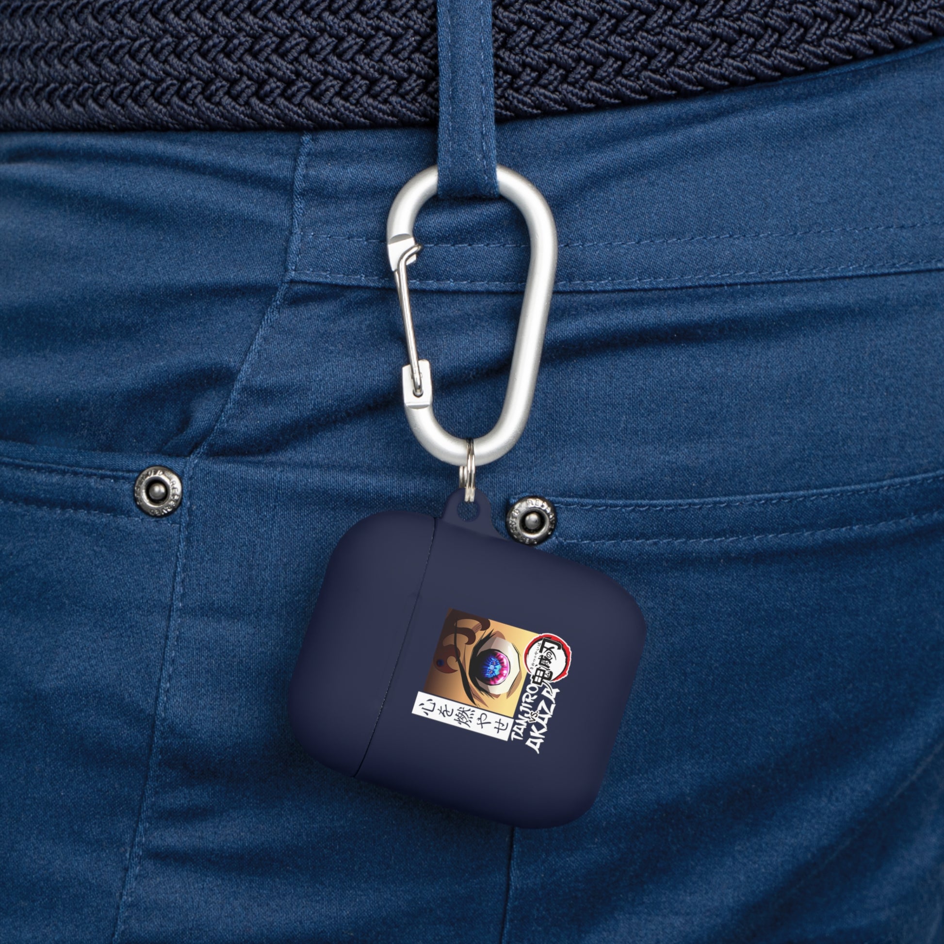 A slim, protective AirPods case cover that brings anime-inspired edge to everyday carry. The soft, premium TPU shell fits snugly over 1st/2nd-gen AirPods or 1st-gen AirPods Pro (choose model), shielding them from bumps, drops and scratches while keeping wireless charging fully functional. A crisp, vibrant print panel with subtle stipple texture showcases a single intense anime eye and stylized kanji, giving the case a low-profile, moody look that pops against the smooth matte finish. Lightweight and pocket-friendly, it includes a sturdy metal carabiner so you can clip your AirPods to bags, belt loops, or keys and take them with you without worry. Thoughtfully finished and certified to safety standards, this cover is for adults who value style, durability, and a touch of fandom in their daily routine.