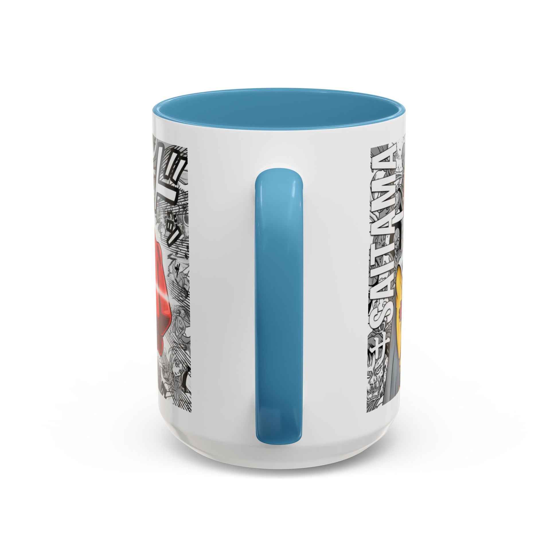 This ceramic coffee mug brings a bold, energetic splash to your morning routine. The colored interior and handle frame a dynamic comic-style design that feels alive — fast-paced panels in monochrome background make the central hero pop with vivid color. It’s sturdy, glossy, and built for everyday use, so the art can accompany you through hurried breakfasts, late-night study sessions, or relaxed weekend coffee breaks. The C-shaped handle sits comfortably in hand and the high-contrast look stands out on any shelf or desk, adding personality wherever you drink.