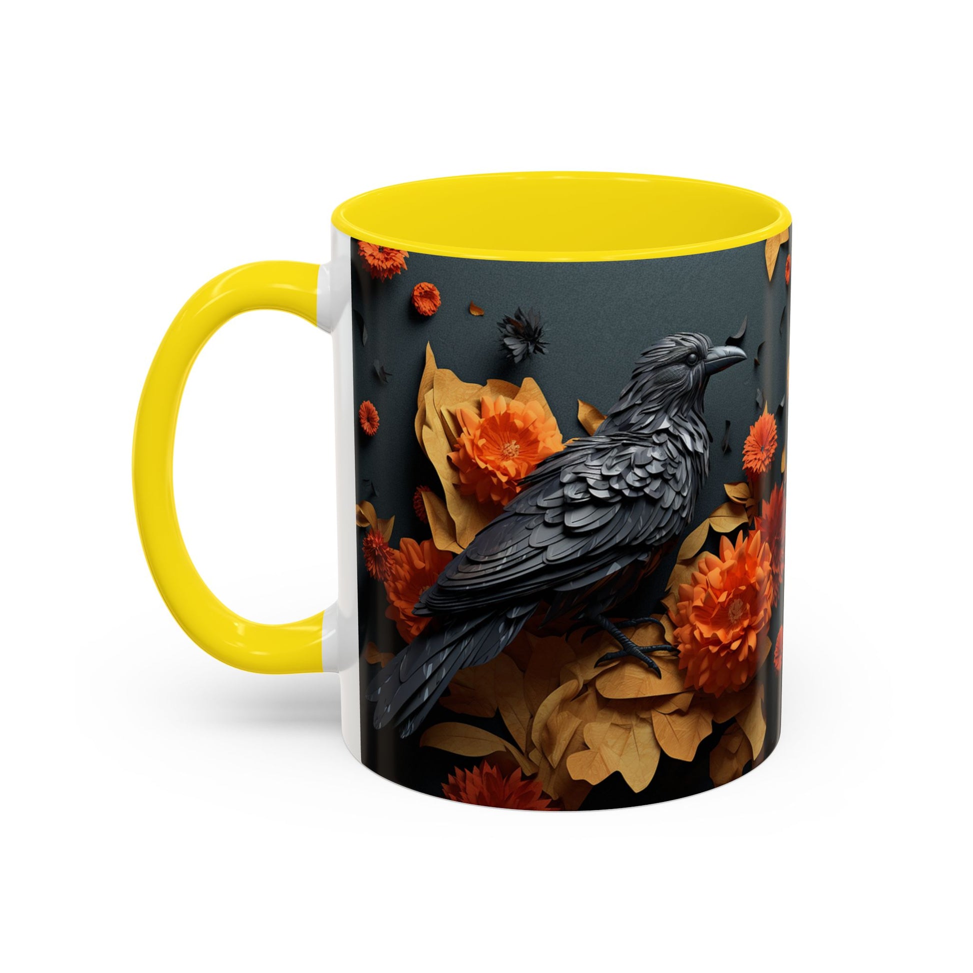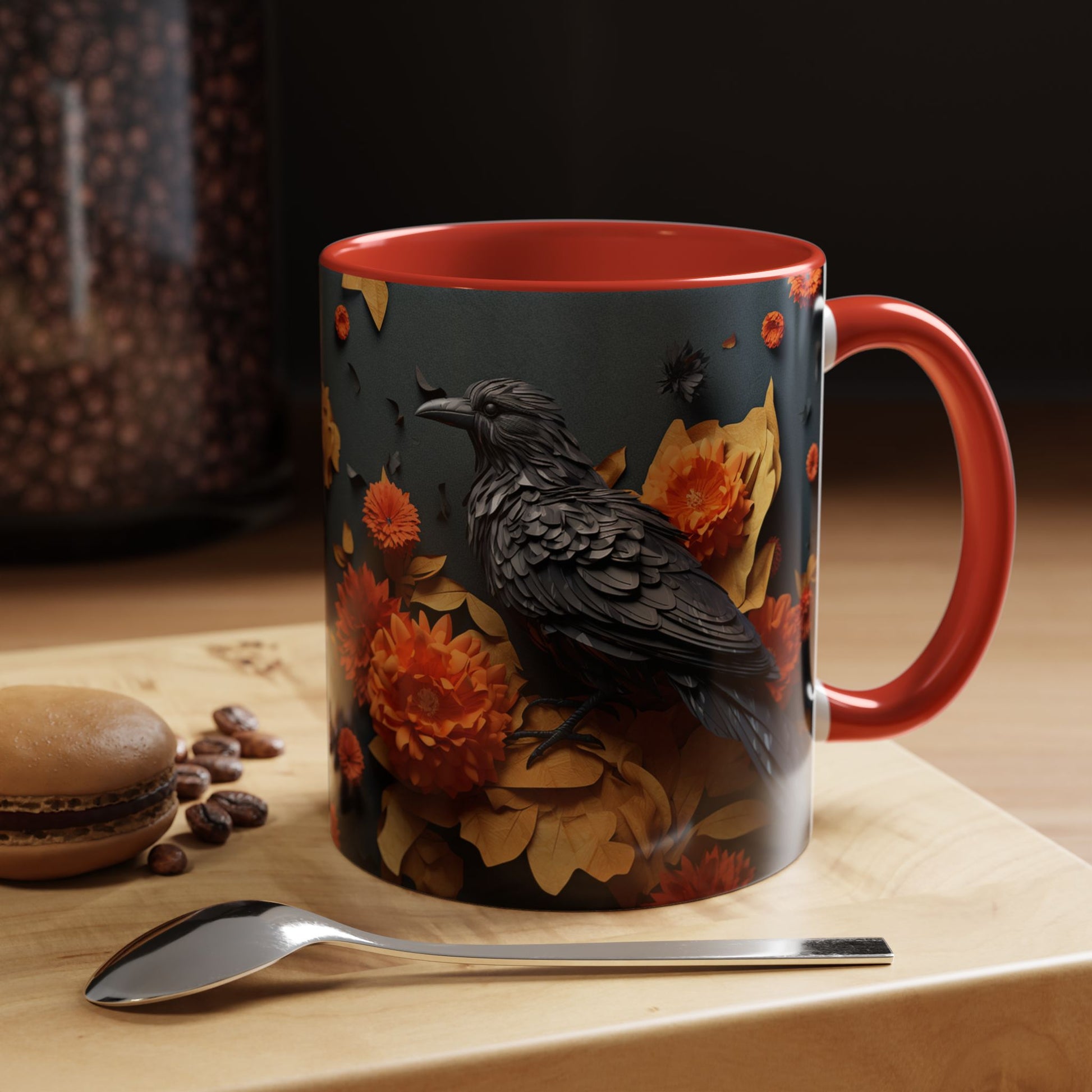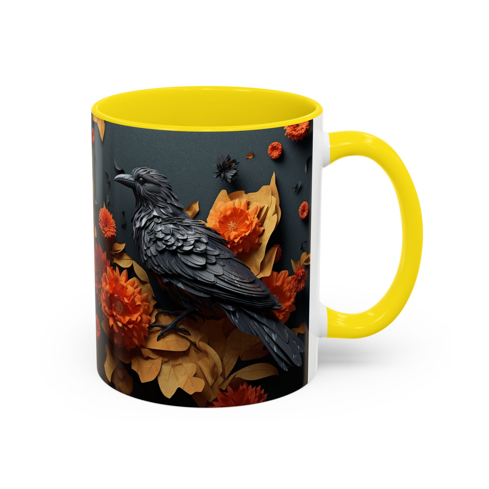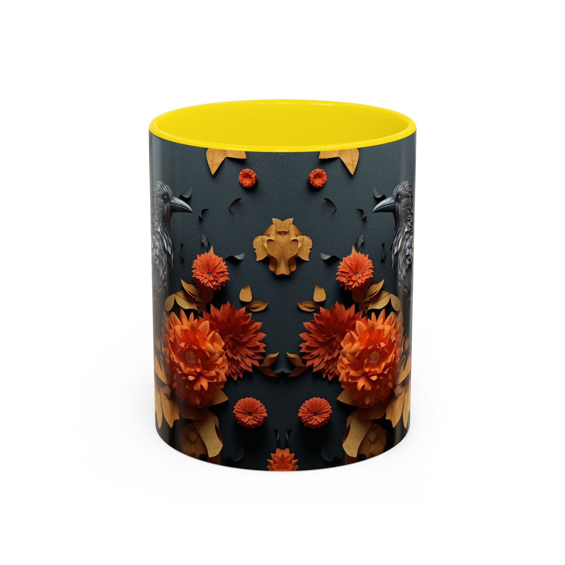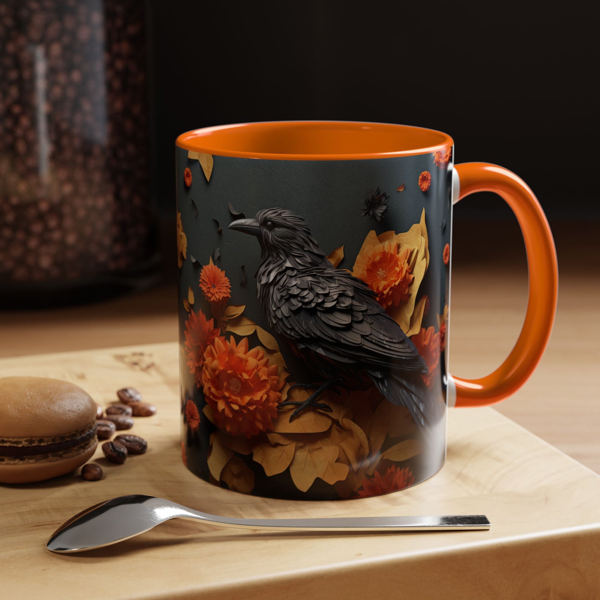 Autumn Raven Accent Coffee Mug — Black Crow & Orange Chrysanthemums (11/15oz)