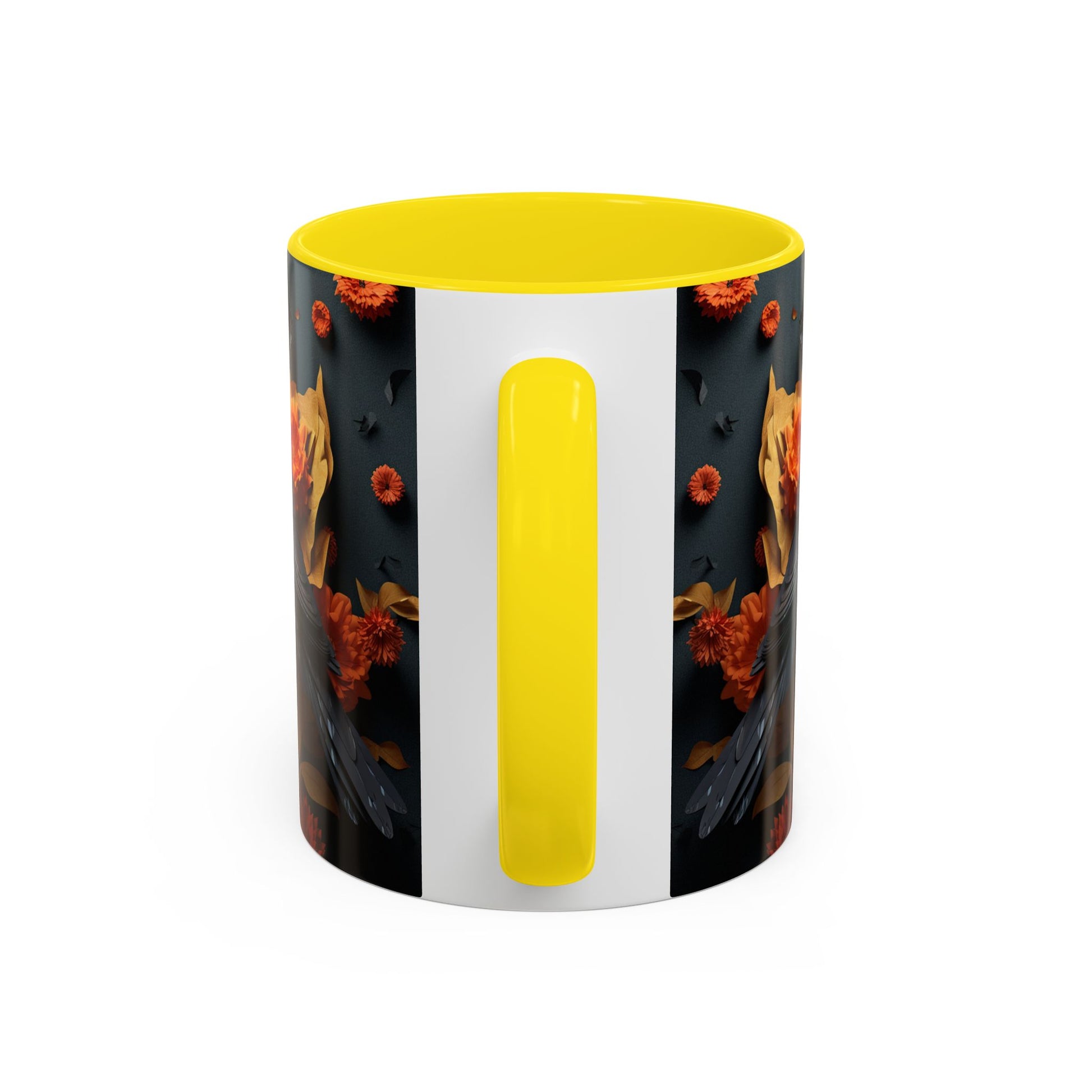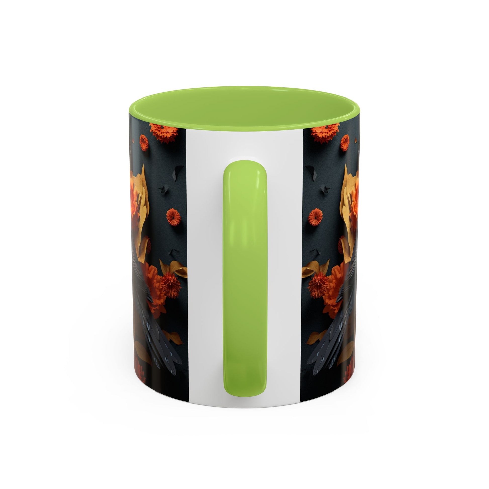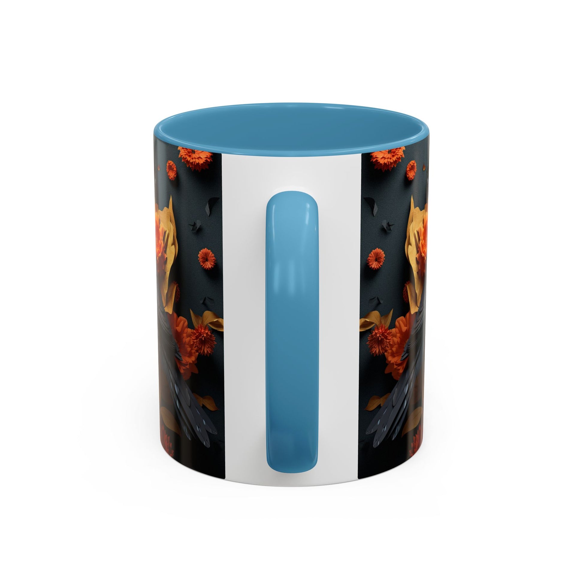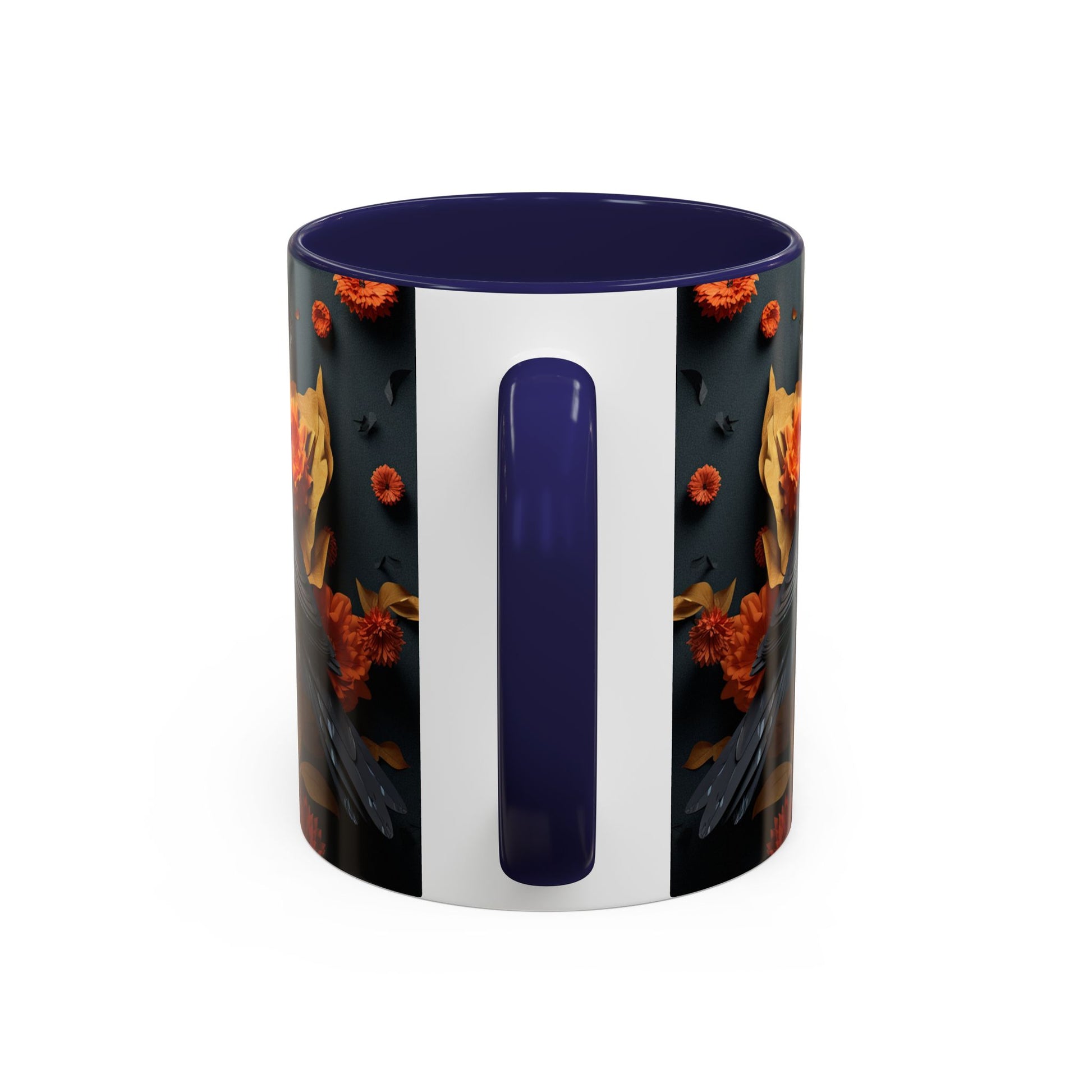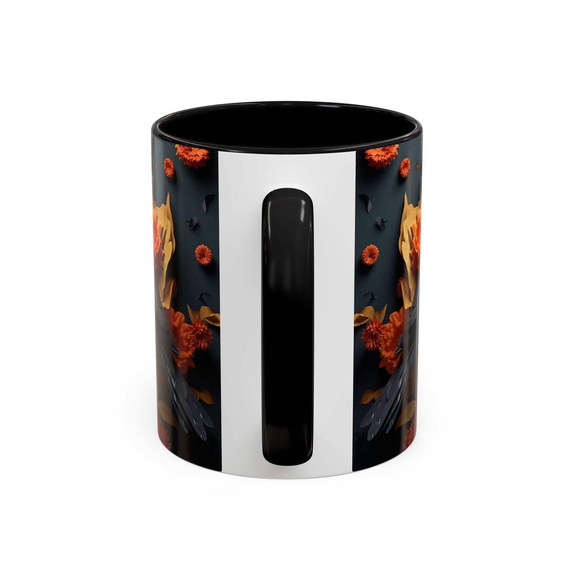 Autumn Raven Accent Coffee Mug — Black Crow & Orange Chrysanthemums (11/15oz)