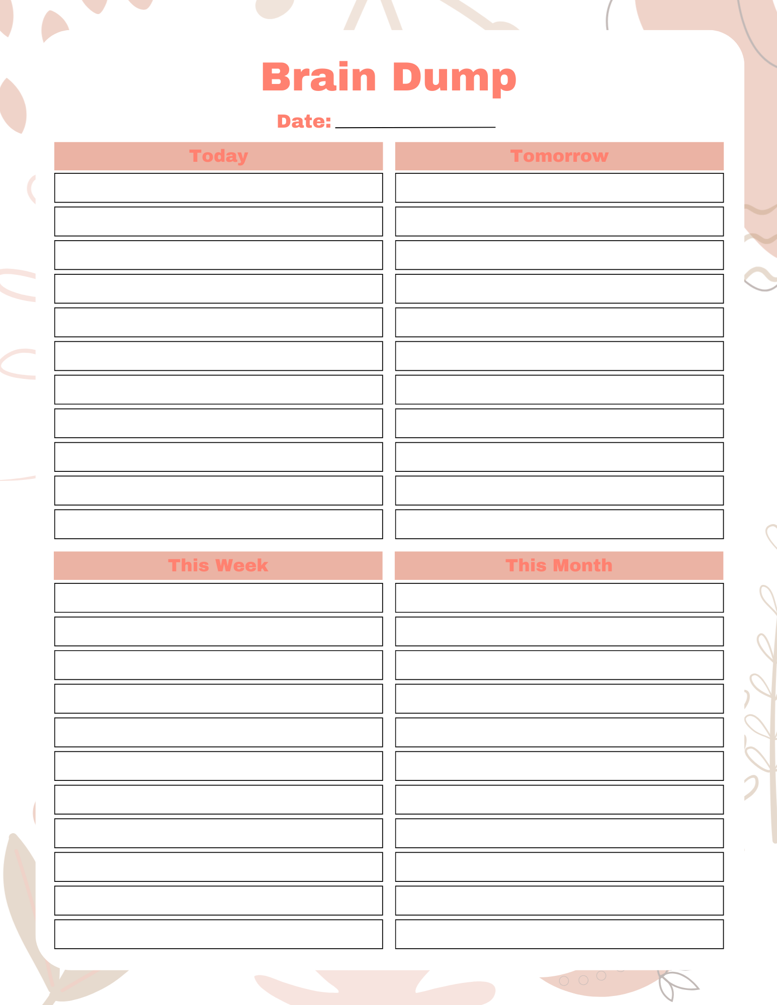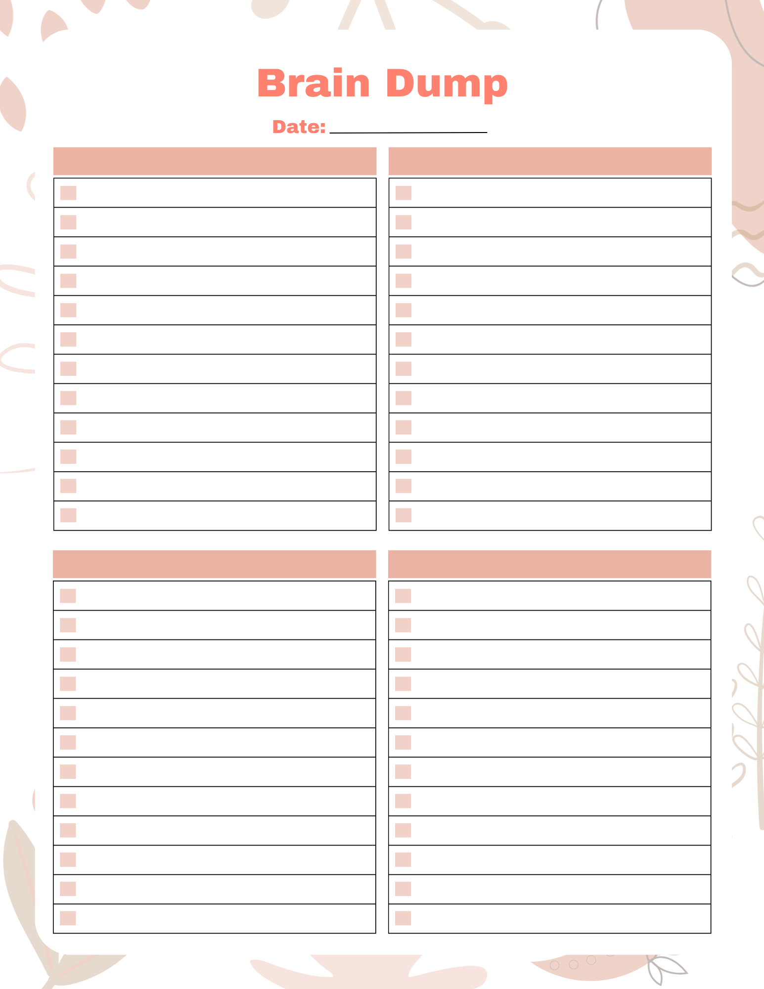 Clear your mind and boost your productivity with our Brain Dump Bundle, a comprehensive digital download designed to help you organize thoughts, ideas, and tasks effortlessly. This bundle includes various templates and prompts to capture everything on your mind—from daily to-dos and goals to creative ideas—so you can declutter mental clutter and gain clarity. Perfect for planners, students, entrepreneurs, or anyone seeking mental relief, the Brain Dump Bundle makes it easy to unload, prioritize, and plan with confidence—all in one convenient digital package.