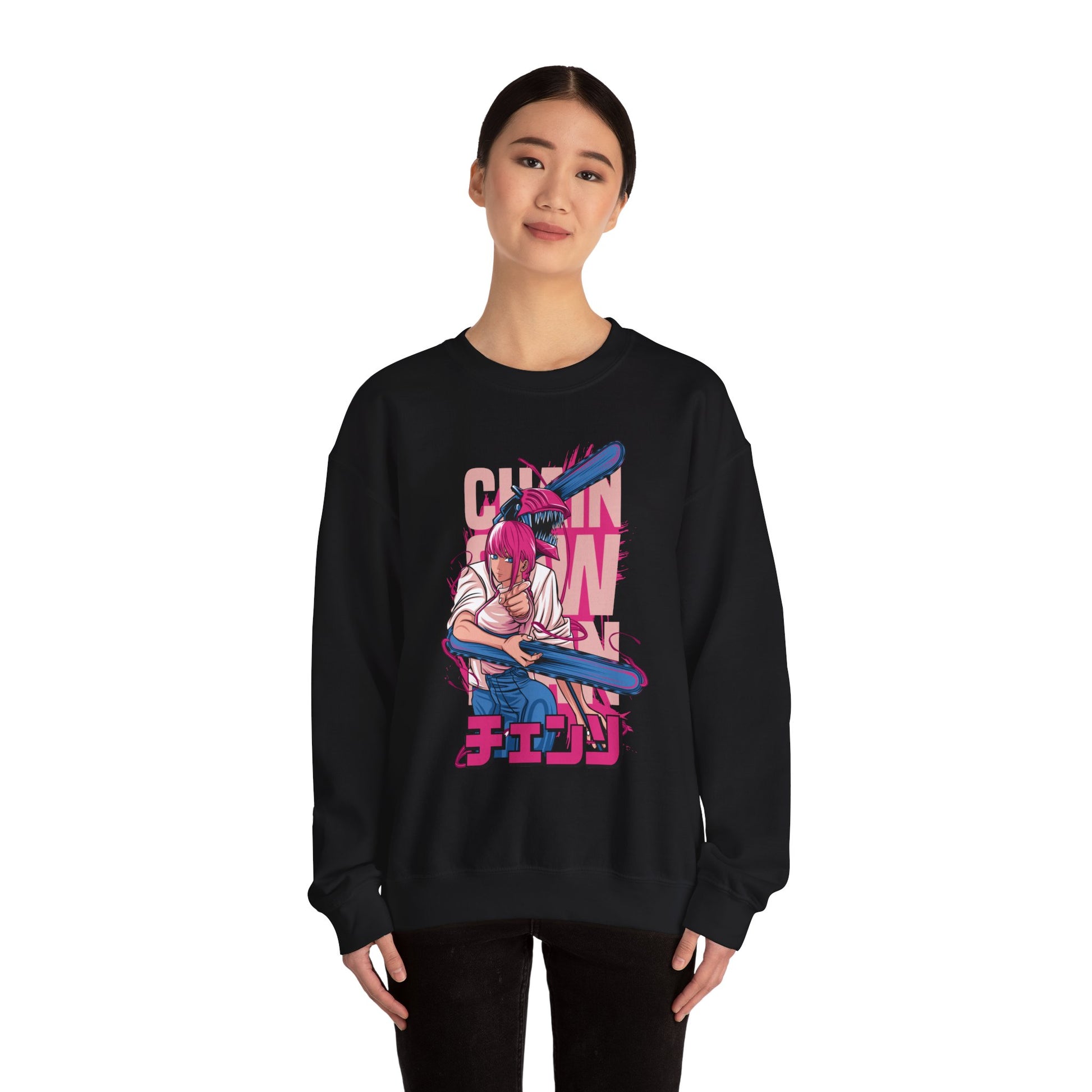 A soft, mid-weight crewneck sweatshirt with a bold, anime-inspired graphic that channels late-night city energy. The artwork — neon pinks and electric blues framing a fierce, bat-wielding character — sits cleanly on the front, making a confident visual statement without overwhelming the garment. The sweatshirt’s classic fit and ribbed collar keep the silhouette tidy while the tubular knit construction and double-needle stitching ensure it holds up to regular wear. Wear it layered over a tee on a graffiti-run night or as a cozy statement piece for chill weekends at the studio. The tear-away label and OEKO-TEX certified dyes add comfort and responsible production to the look.