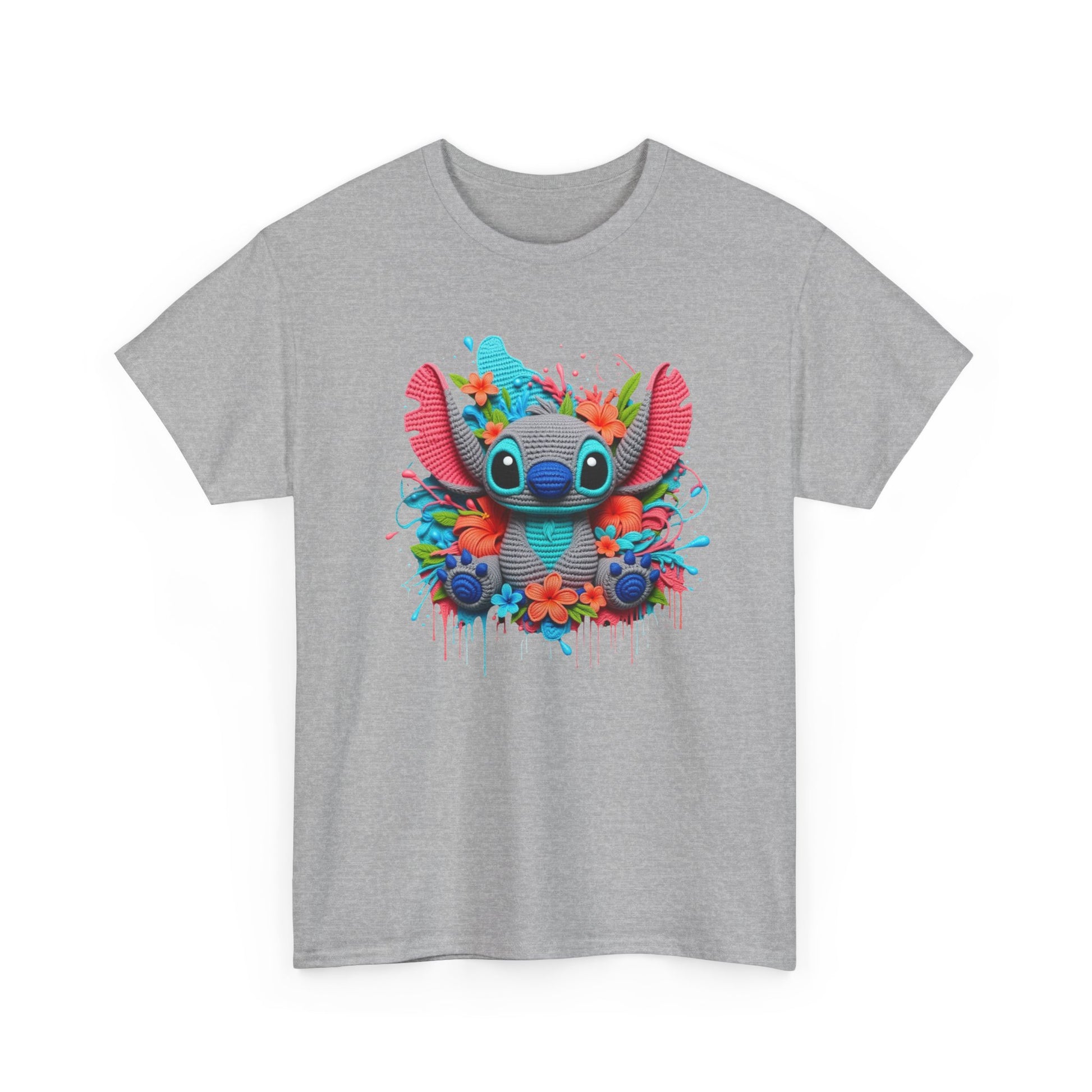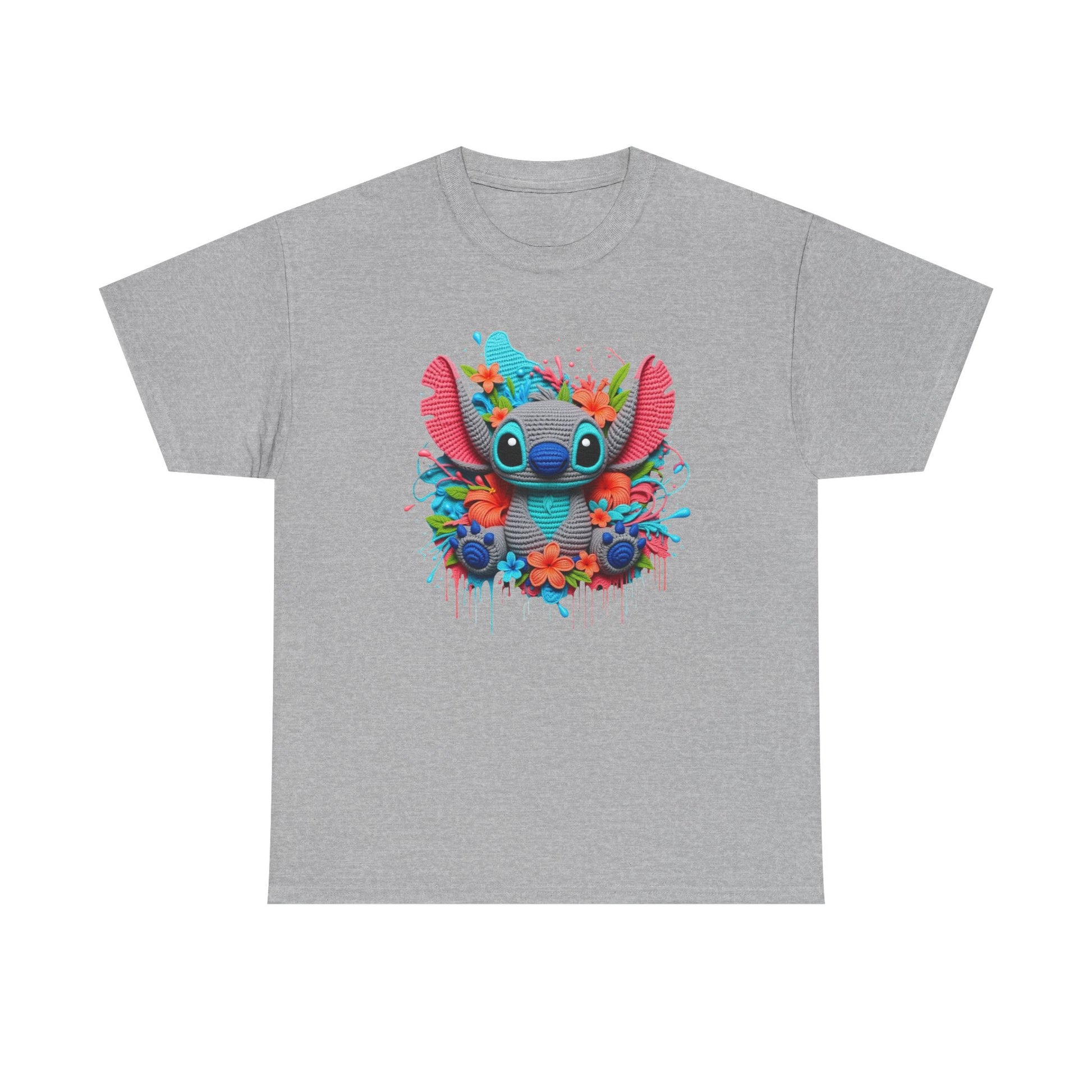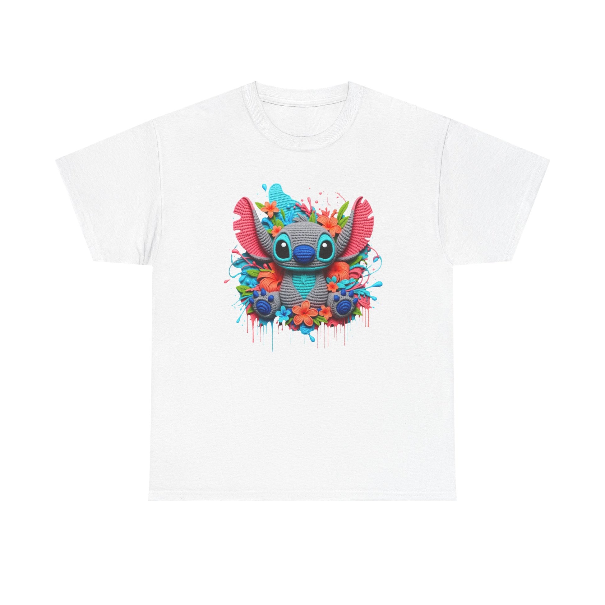 Colorful Floral Stitch Character T-Shirt | Cute Alien with Flowers