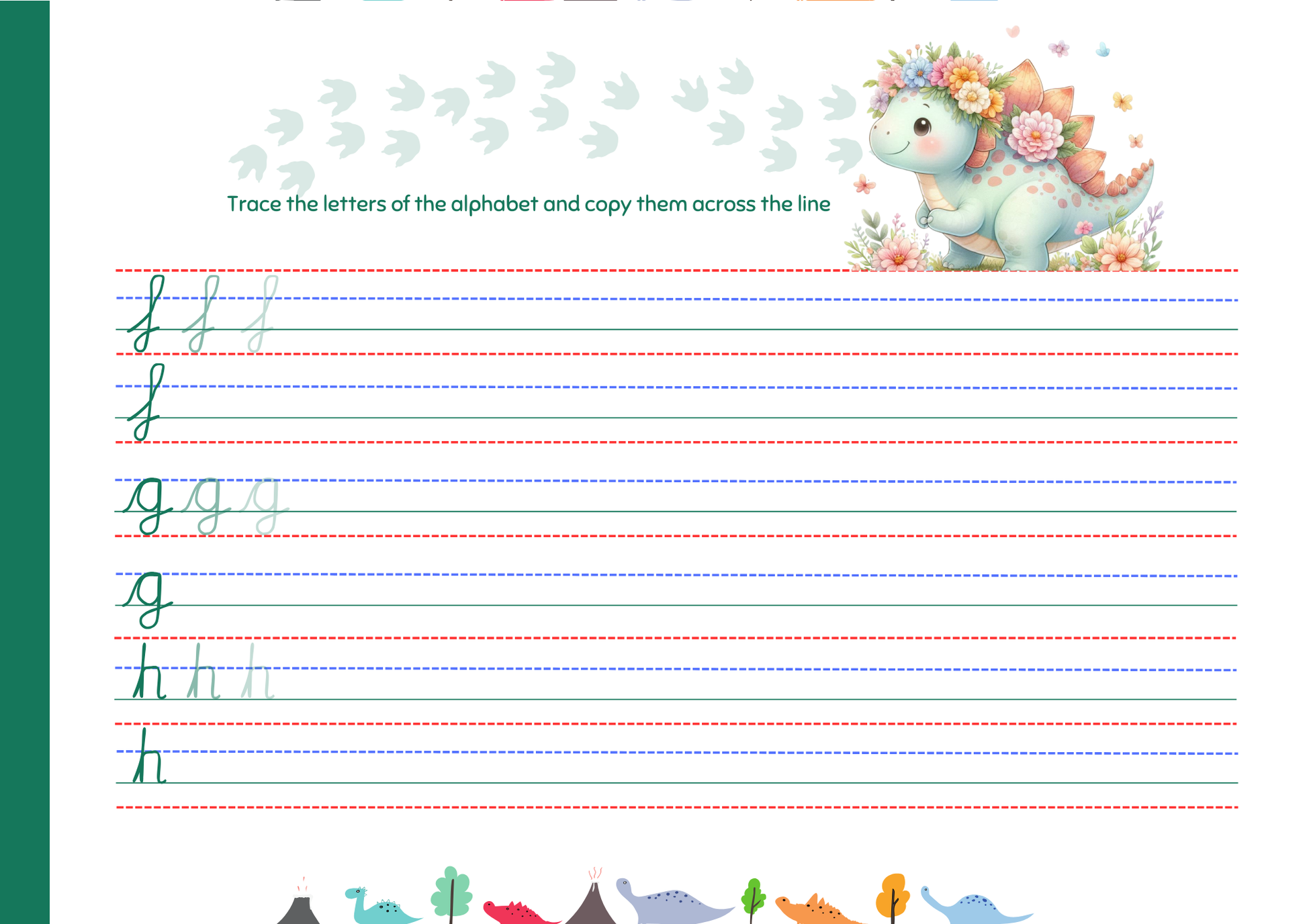 Cursive Letter Tracing Pad - Dinosaur Theme | Digital Download