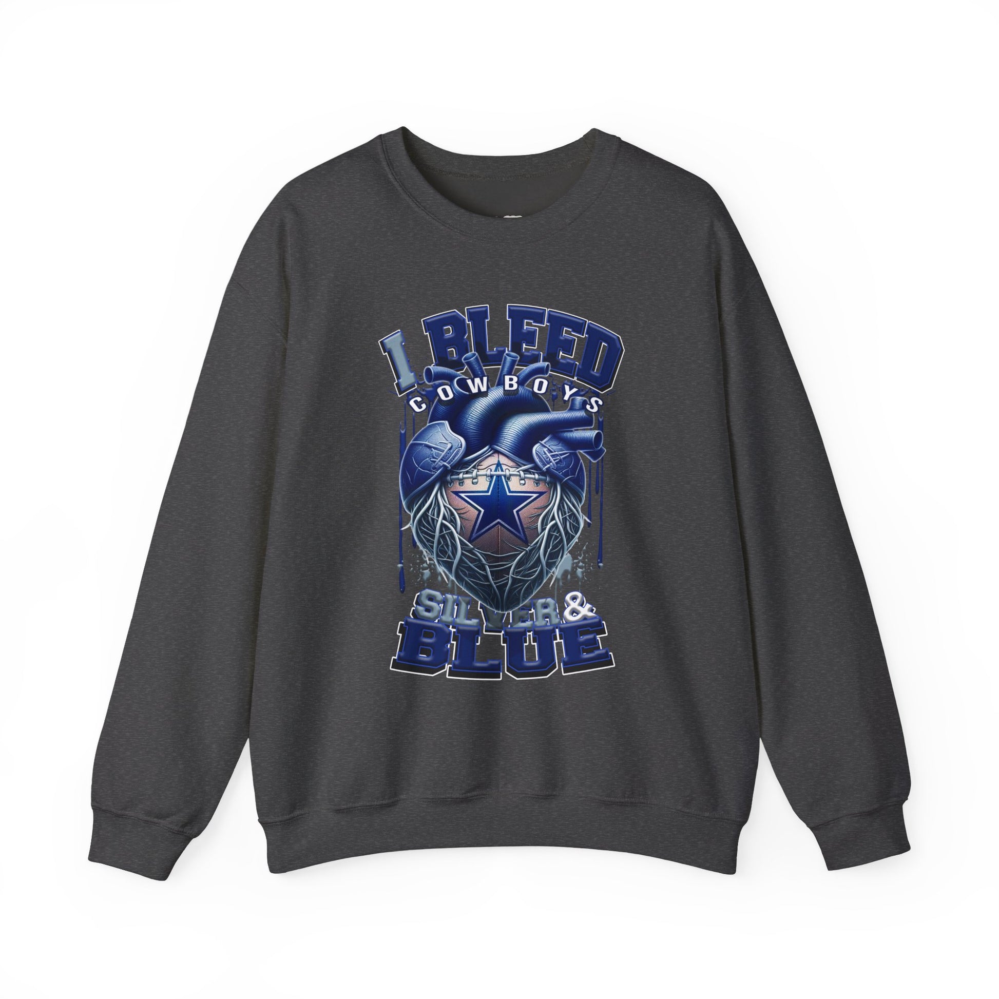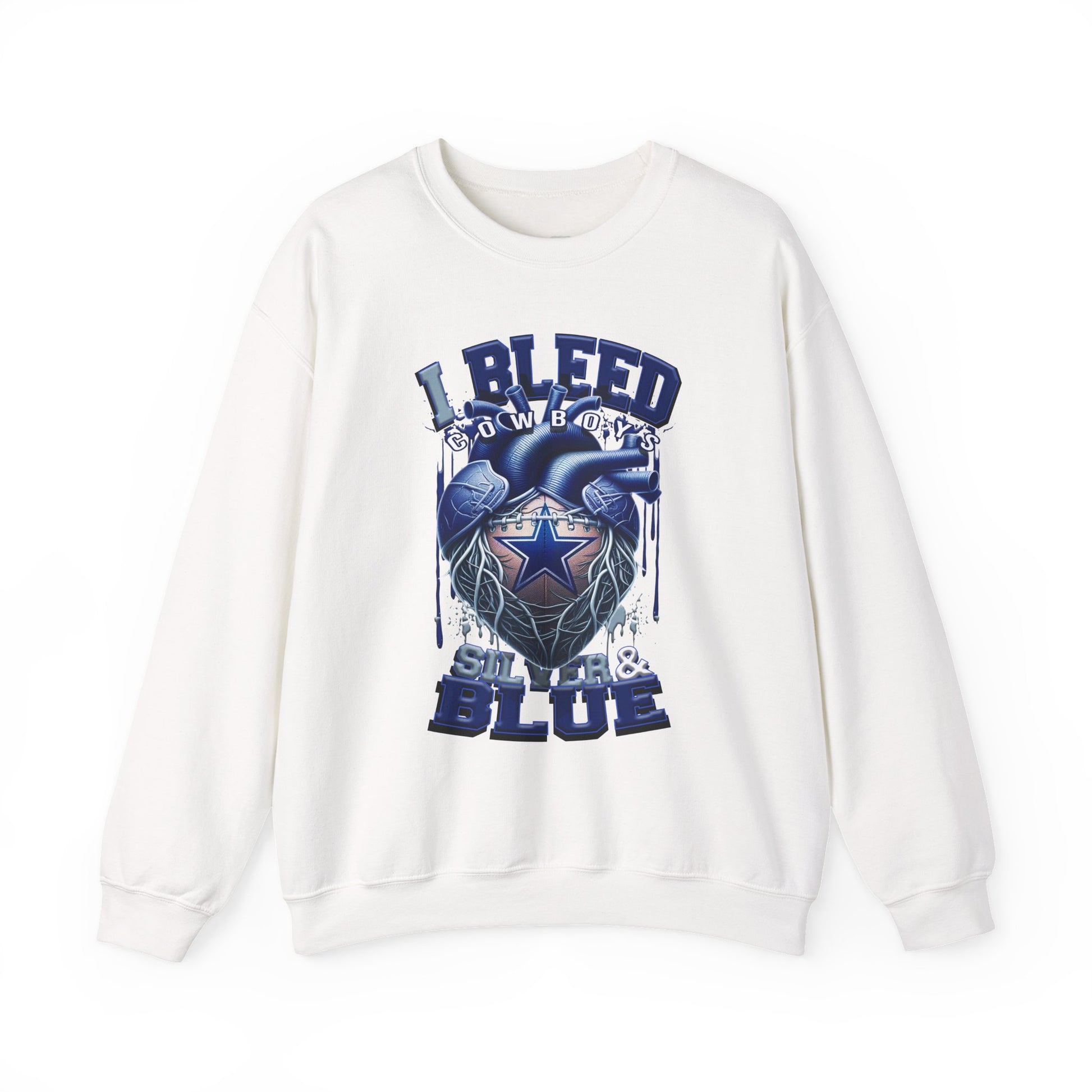 Customizable Cowboys Fan I Bleed Blue heart design Sweatshirt | Sports fan apparel