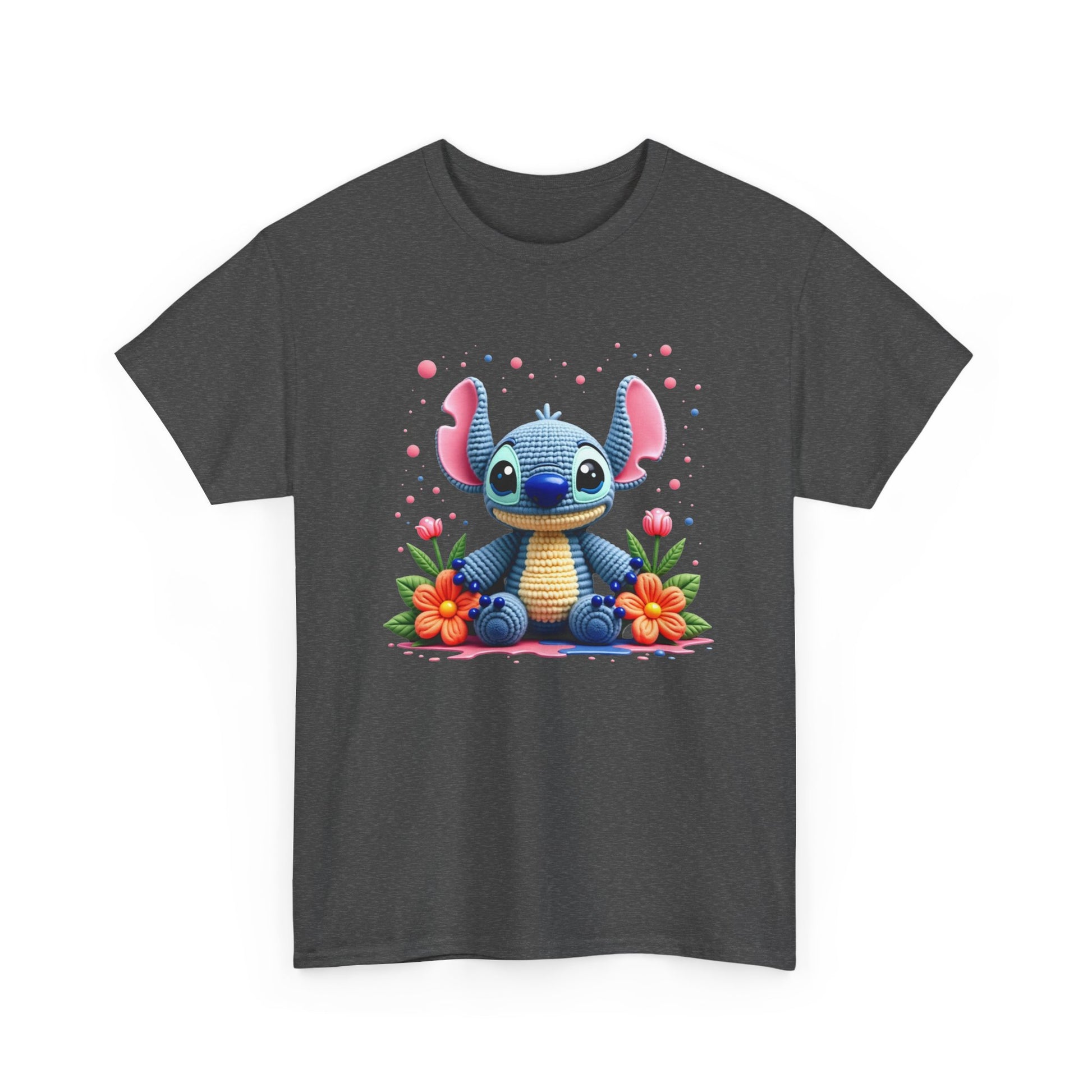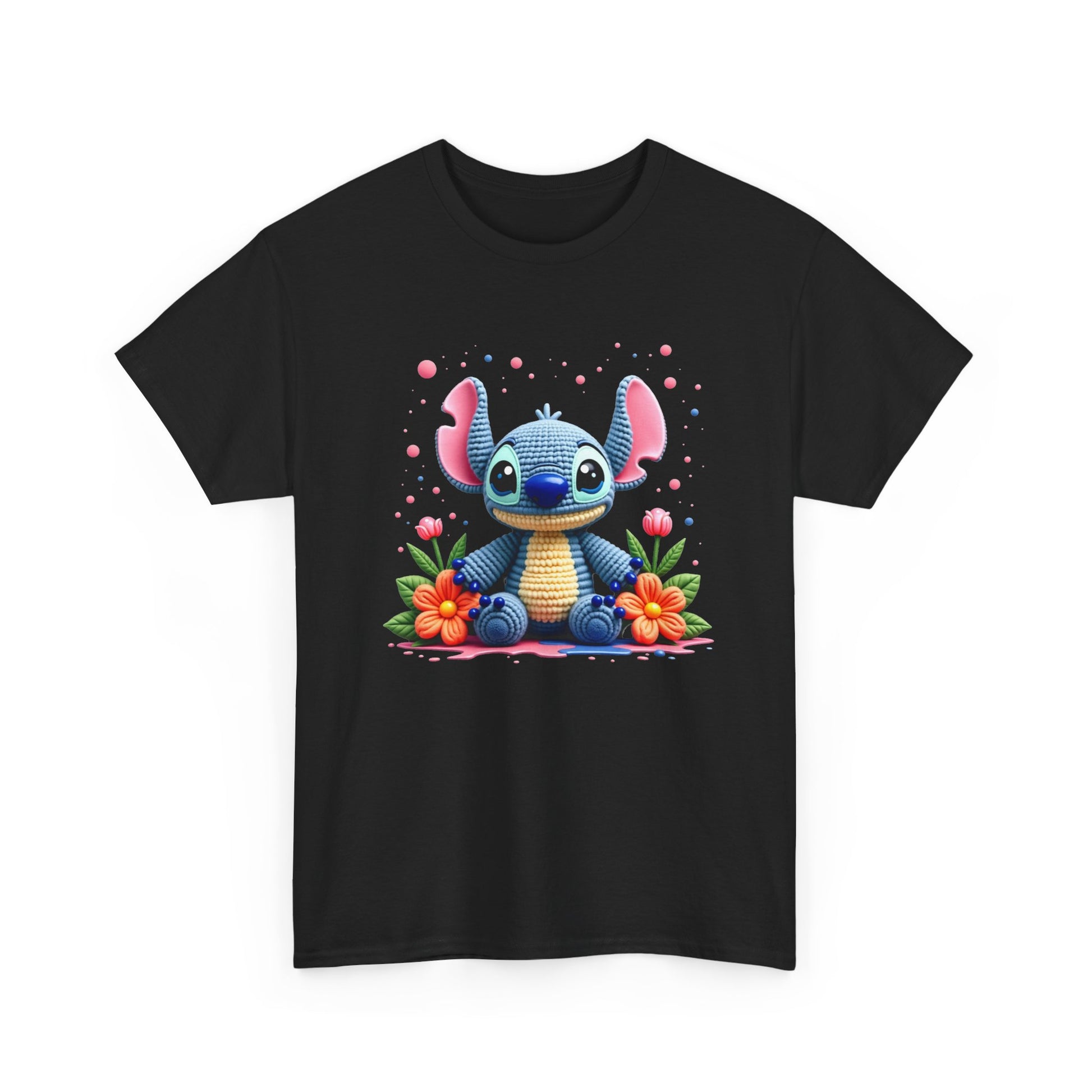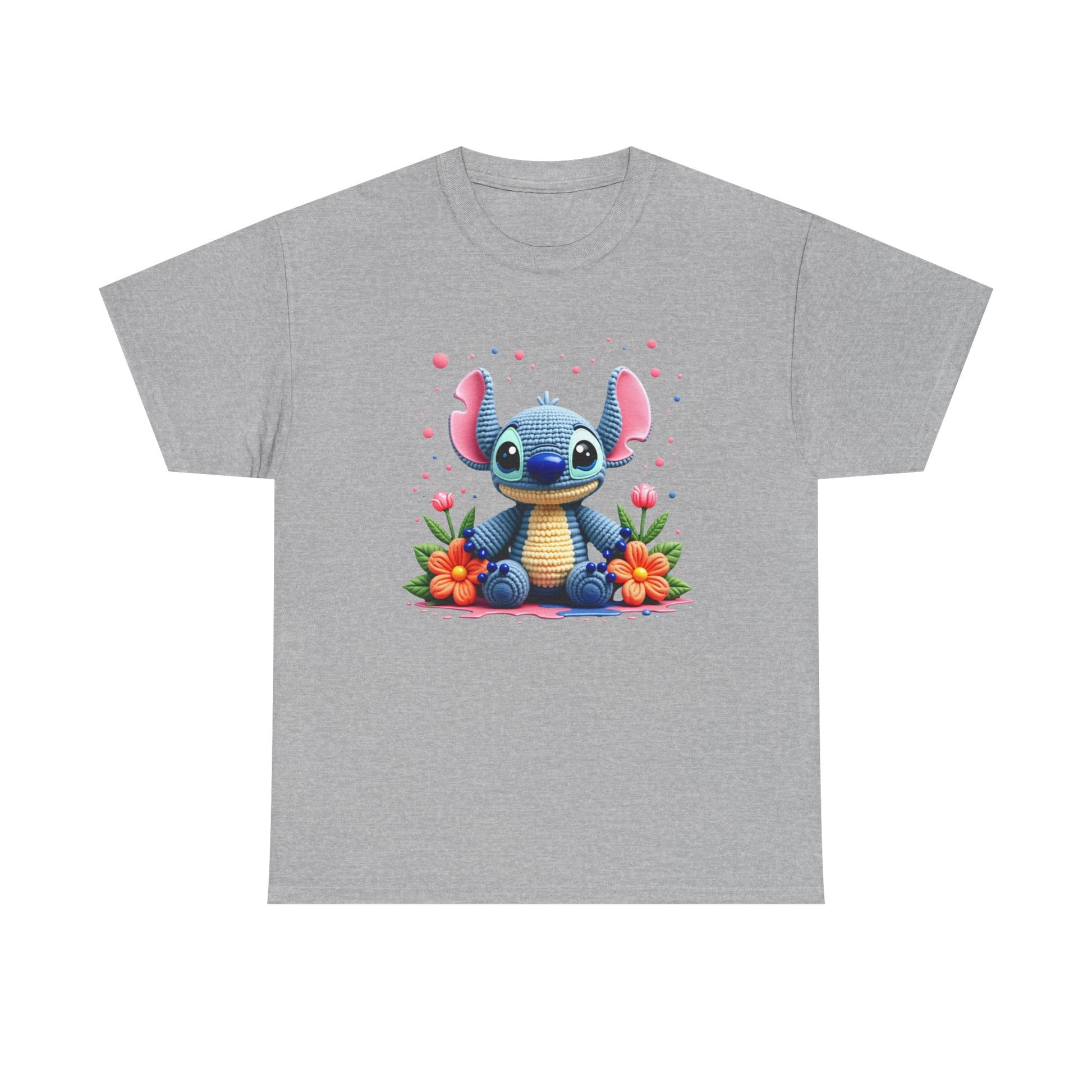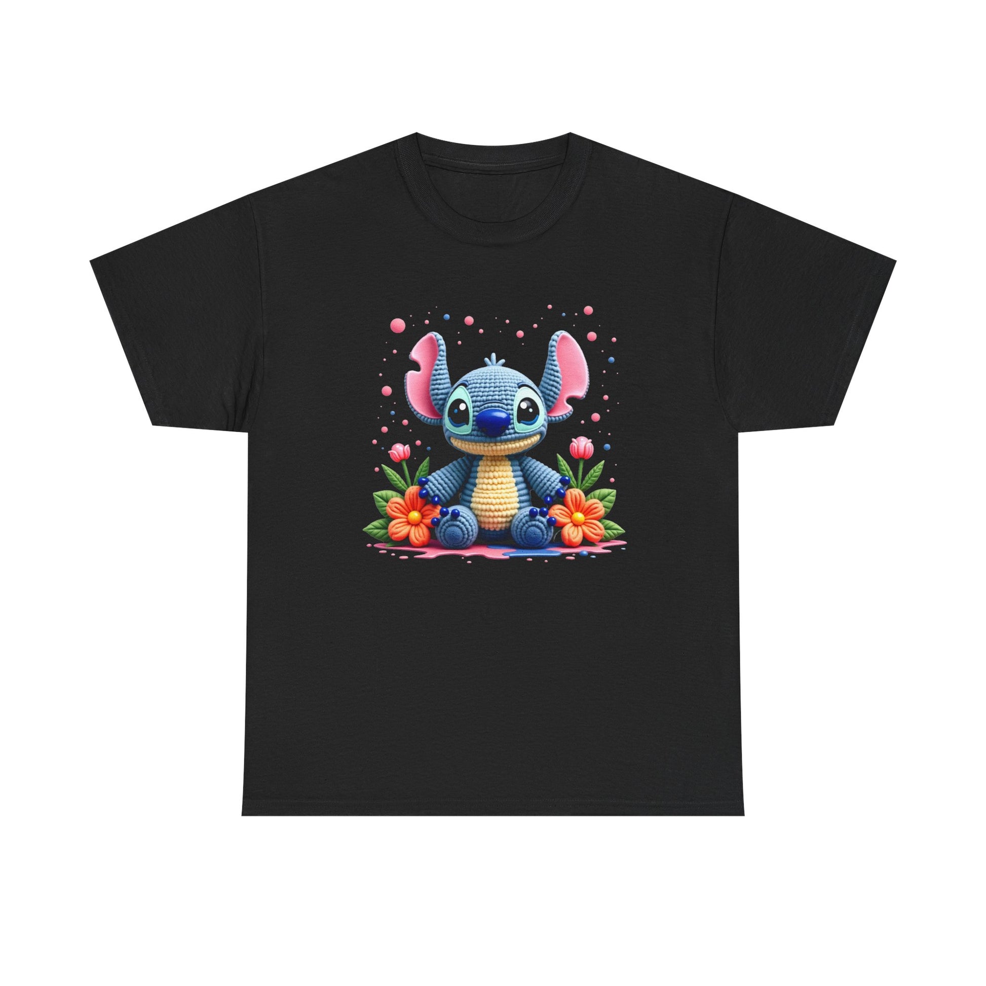 Cute Blue Alien Character Tee | Sitting Stitch-Inspired Design, Floral Accents