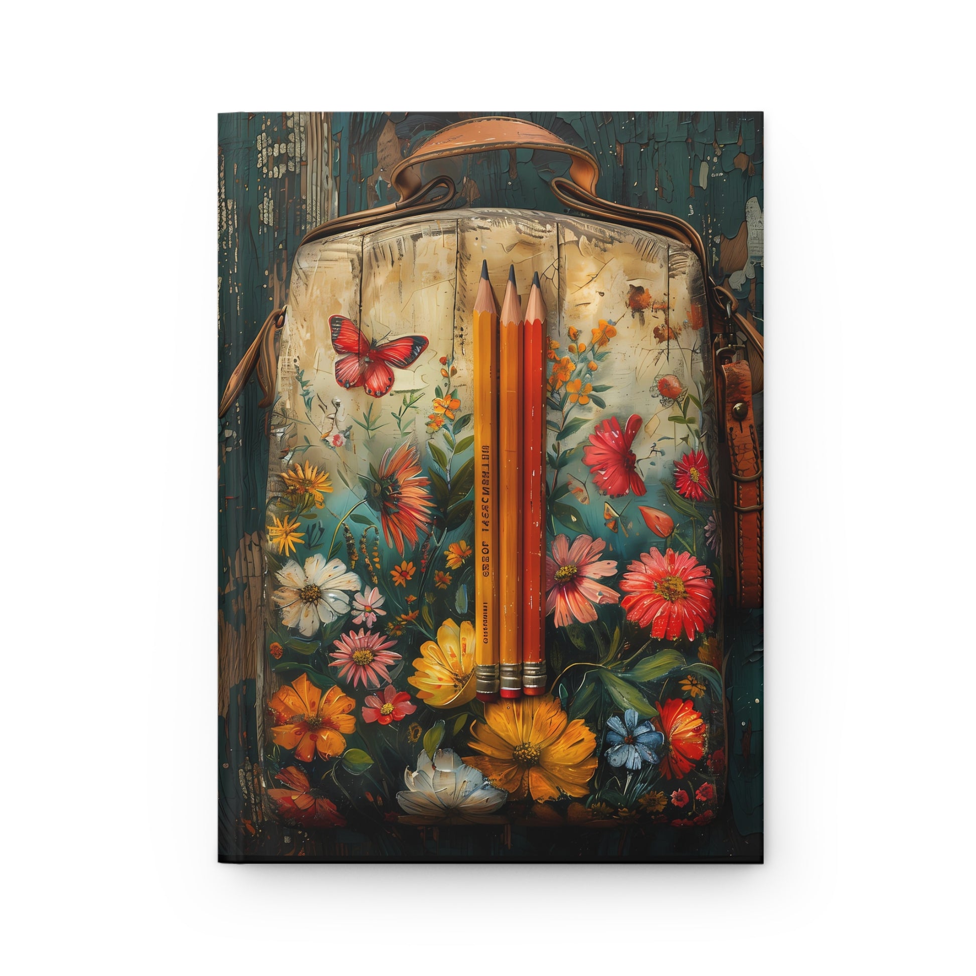 Floral Backpack with Pencils Hardcover Journal | Notebook, Sketchbook