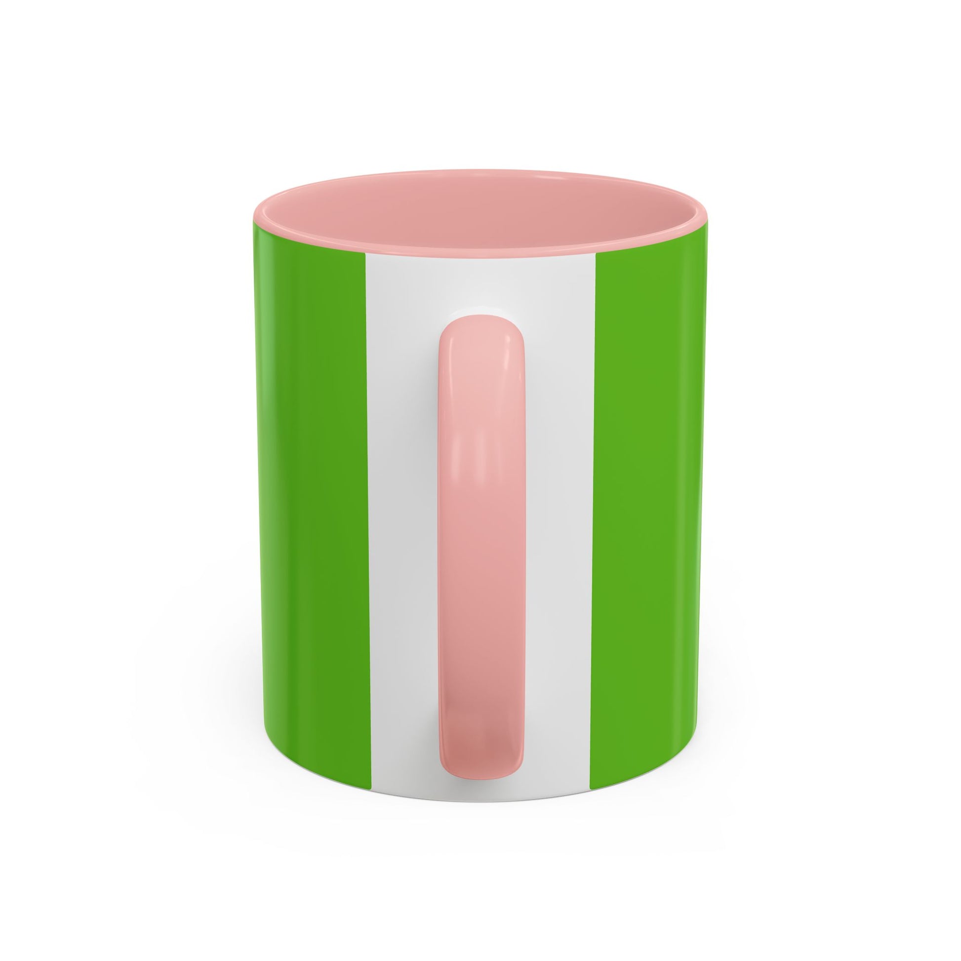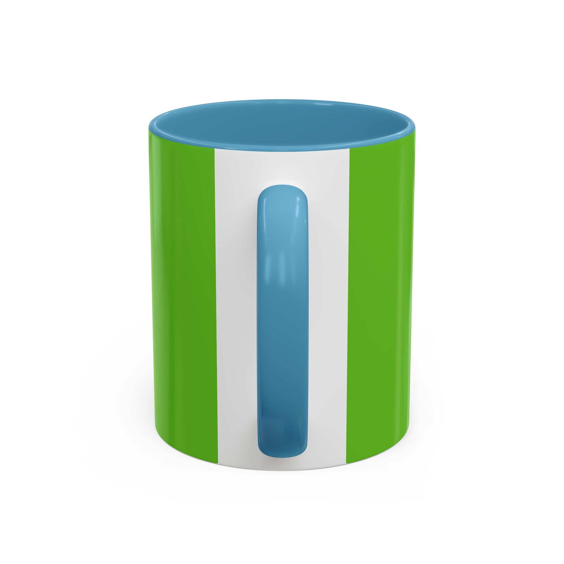 - White ceramic with colored interior and handle and glossy finish