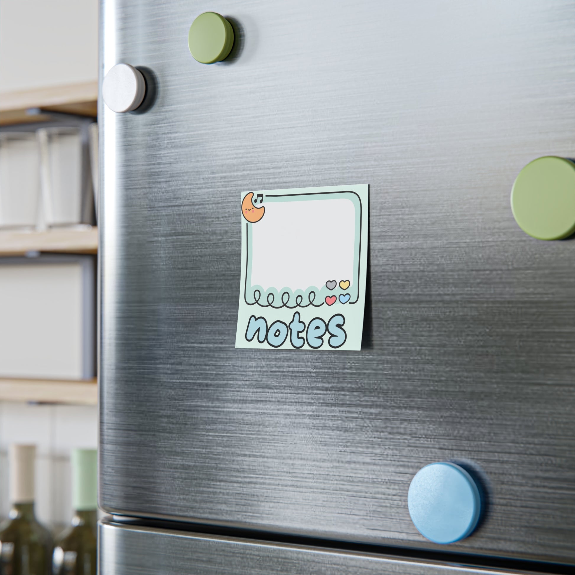 Soft pastel Post-it® note pads with a cute doodle frame and playful lettering that turns everyday reminders into a little moment of joy. Each sheet has a mint border with a looping hand-drawn frame, a sleepy crescent moon doodle in the corner, and three tiny heart accents beside a friendly “notes” heading. The ample white writing area keeps lists and quick thoughts clear while the printed design around the edges adds personality to planners, study sessions, and bedside notes. Bright, crisp printing and a reliable 3M adhesive mean these pads stick where you need them — on laptops, journals, desks, and kitchen cabinets. Assembled in the USA from globally sourced parts and available in several sizes, these pads bring a small, cheerful lift to routines and gifting moments.