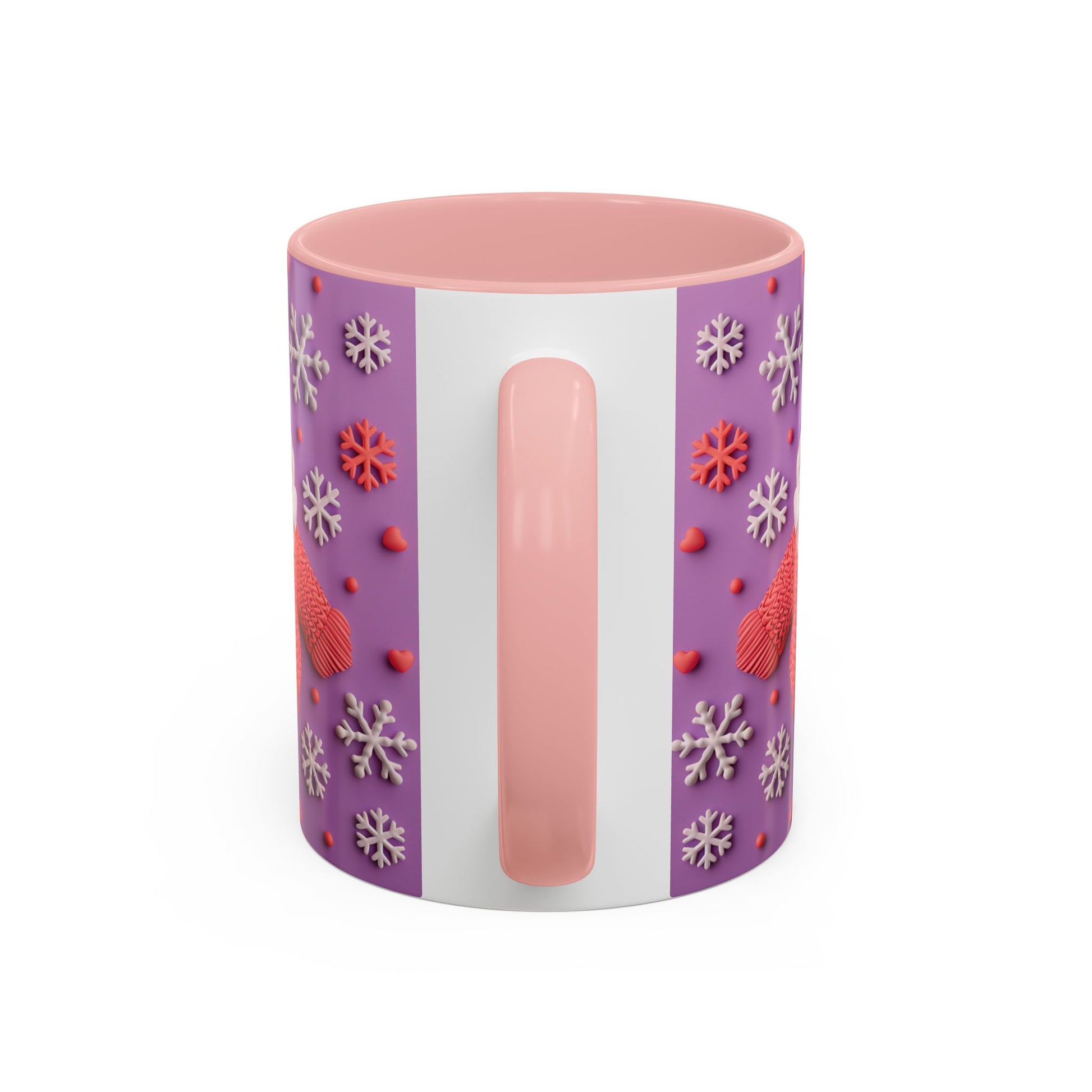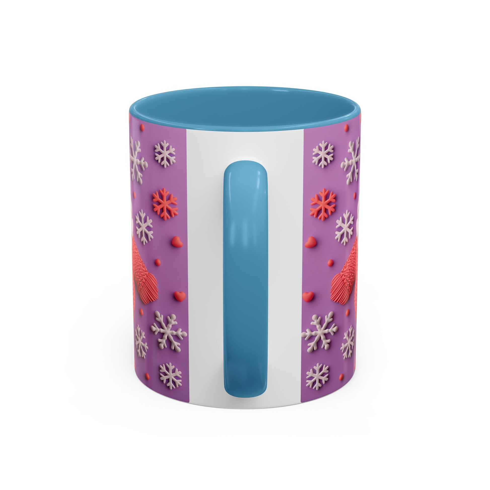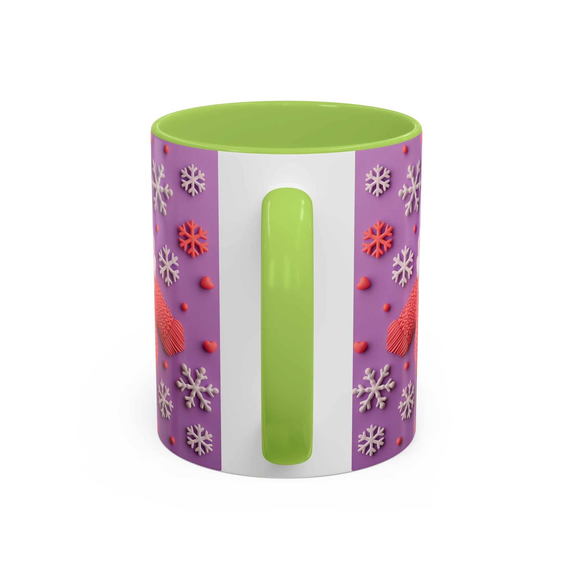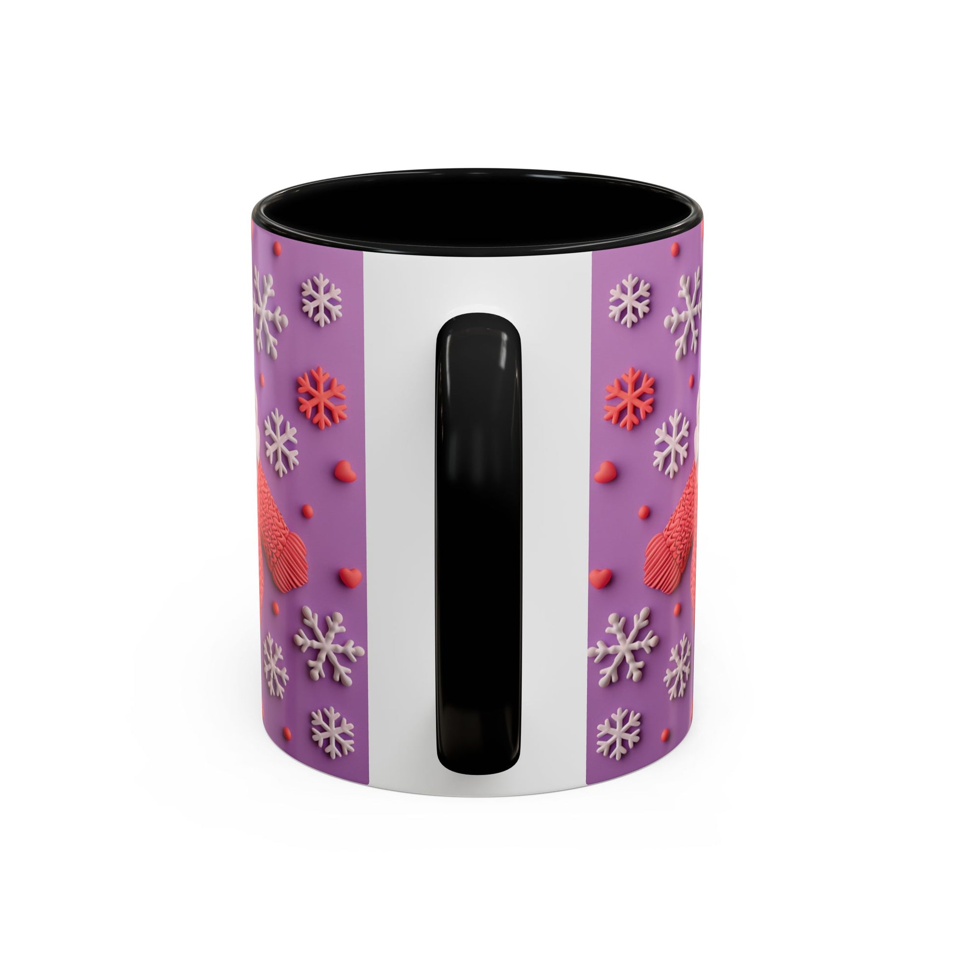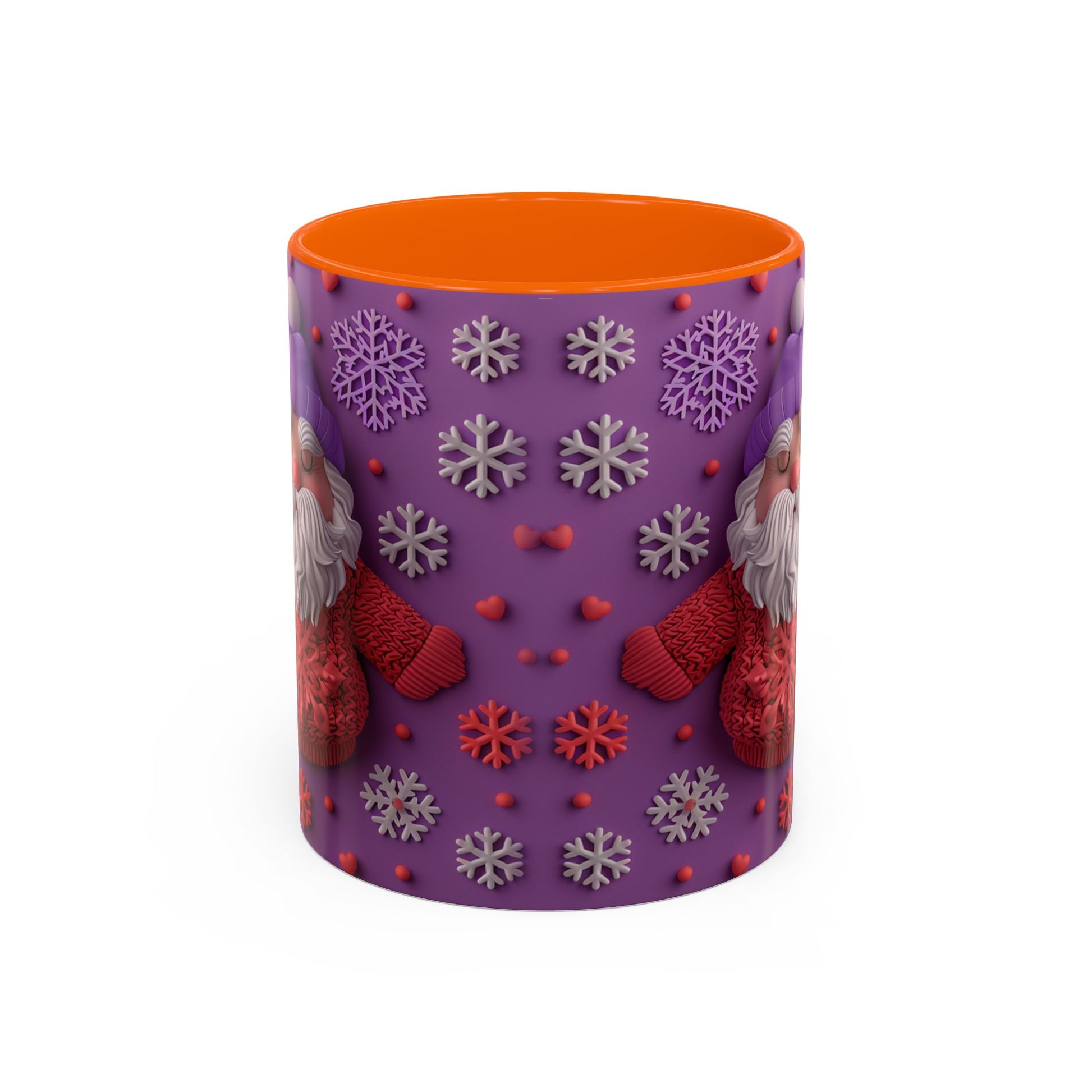 This cheerful ceramic mug brings a little winter wonder to every morning. A rotund, hand-knitted-sweater Santa sits against a purple field dotted with sculpted snowflakes and tiny berries — the design feels cozy, playful, and made for slow sips. The colored interior and handle add a bold contrast that makes the artwork pop, while the glossy finish gives each detail a crisp, tactile look. It’s the kind of mug you reach for on chilly mornings, while wrapping cold hands around warm ceramic and watching steam curl from your coffee or cocoa. For people who love whimsical holiday decor and comforting rituals, this mug becomes part of the routine: morning brew, late-night tea, or a mid-day pick-me-up during the season.