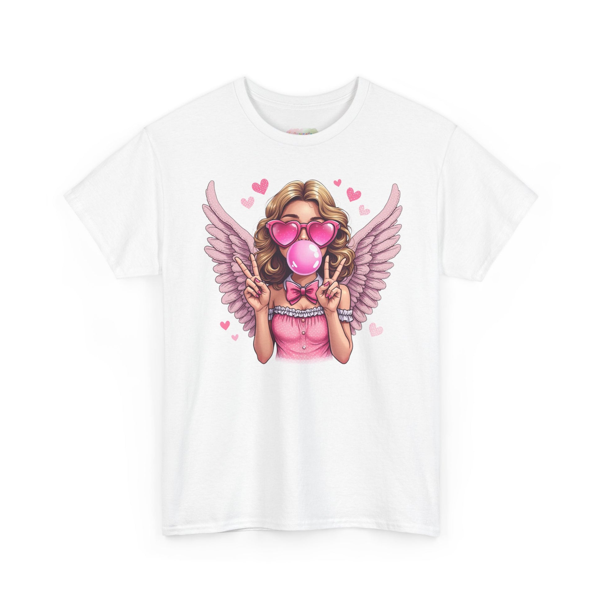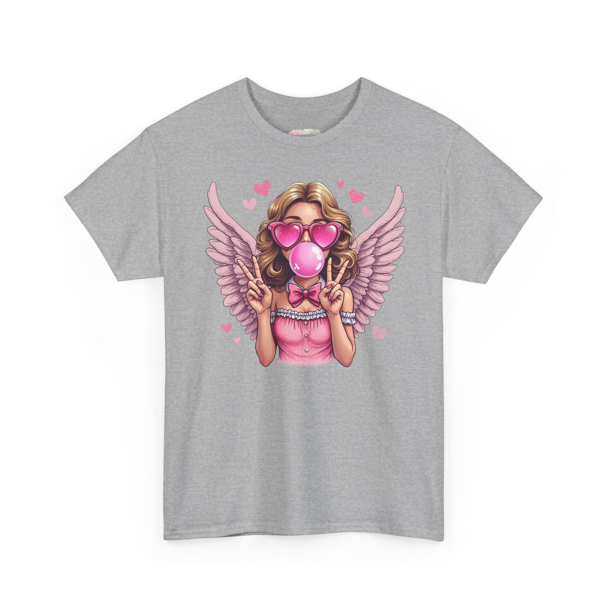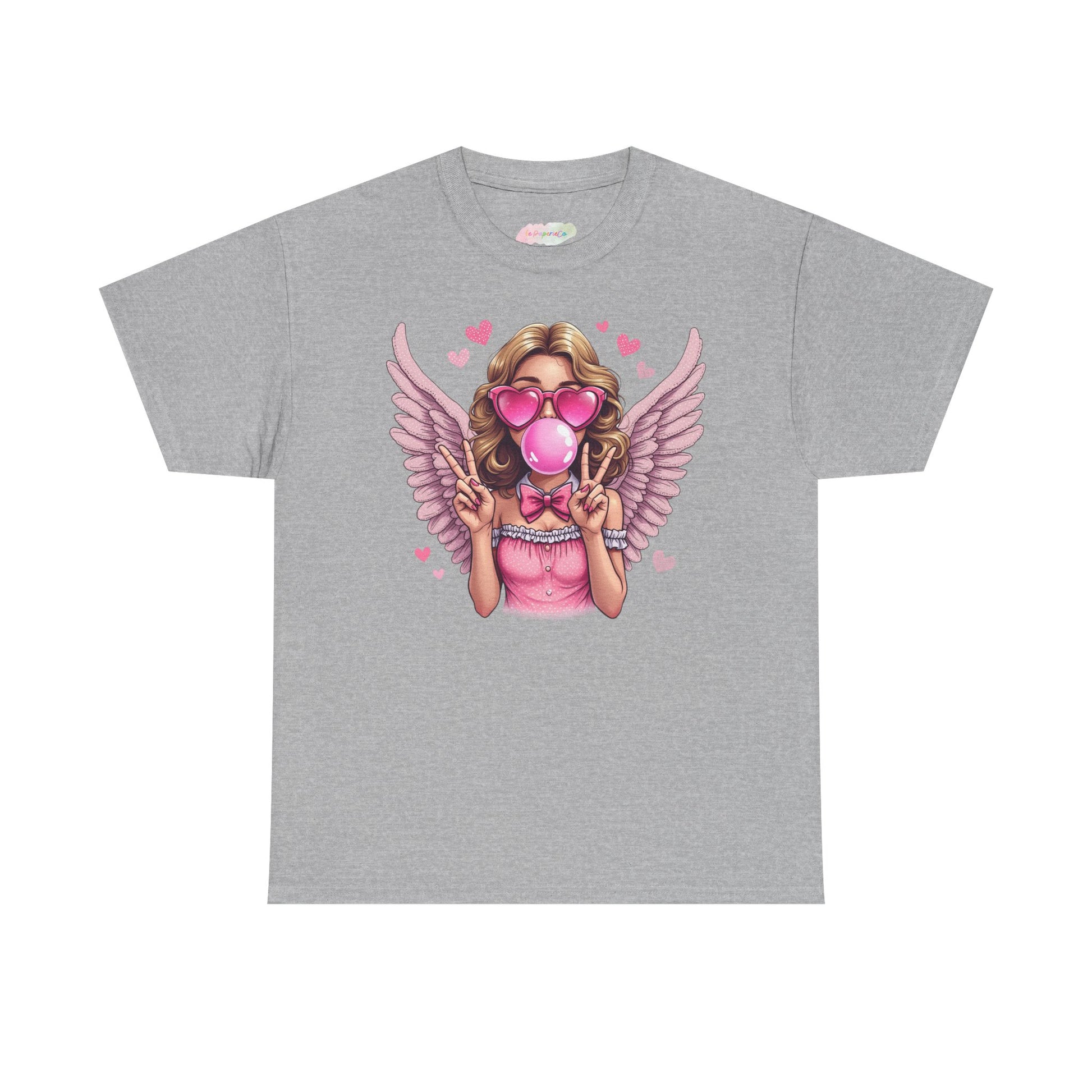 Pink Bubblegum Angel Tee | Winged Girl, Heart Sunglasses, Cute Retro