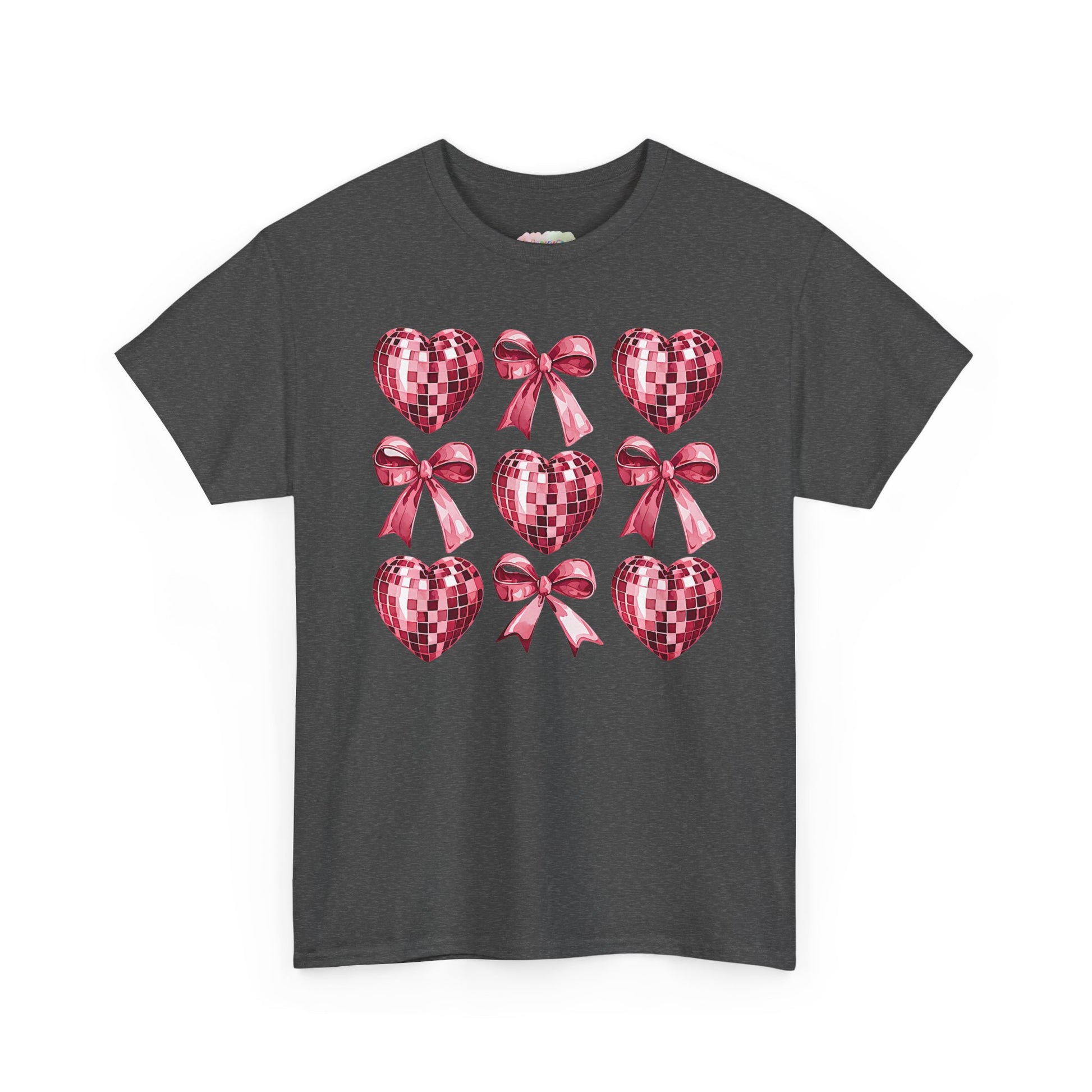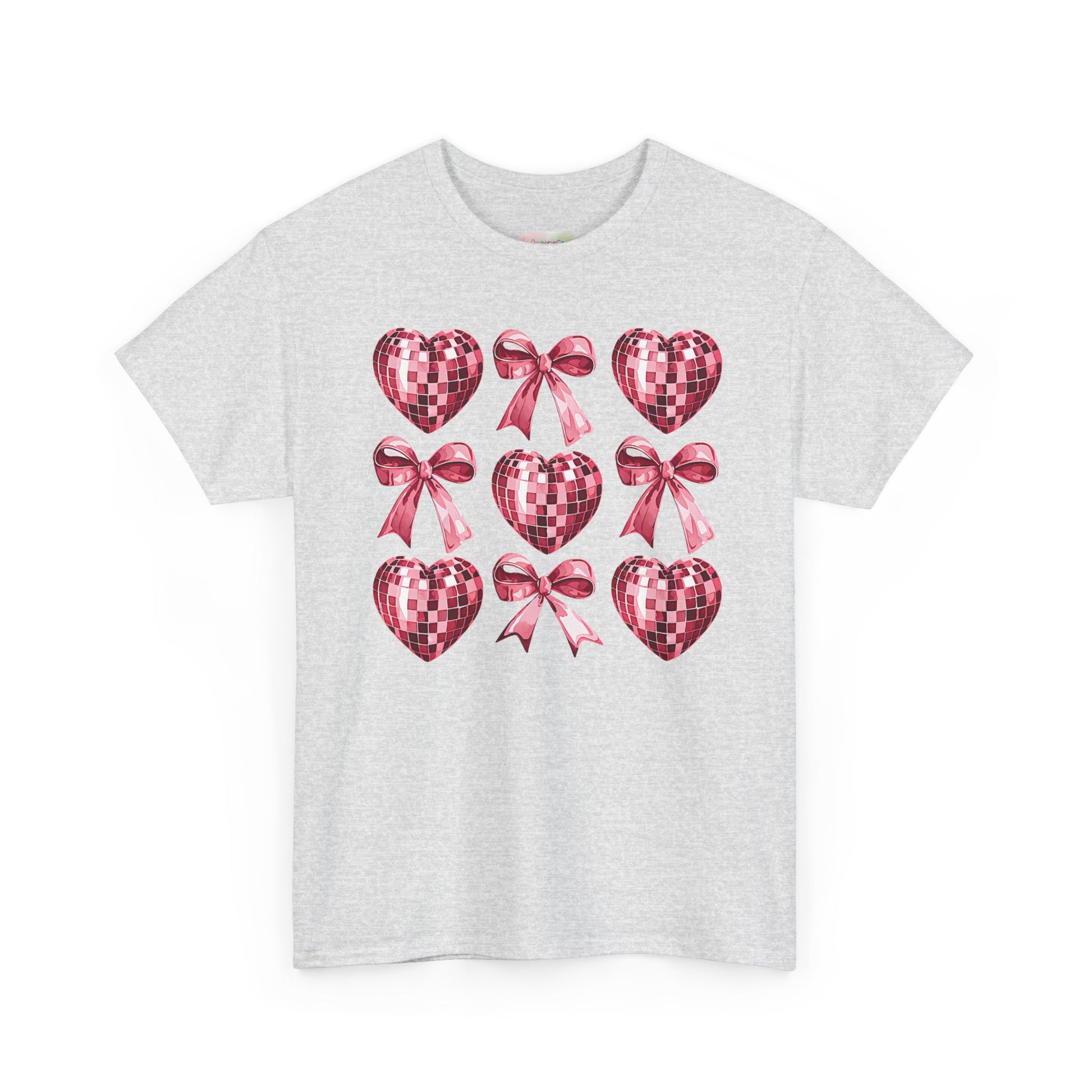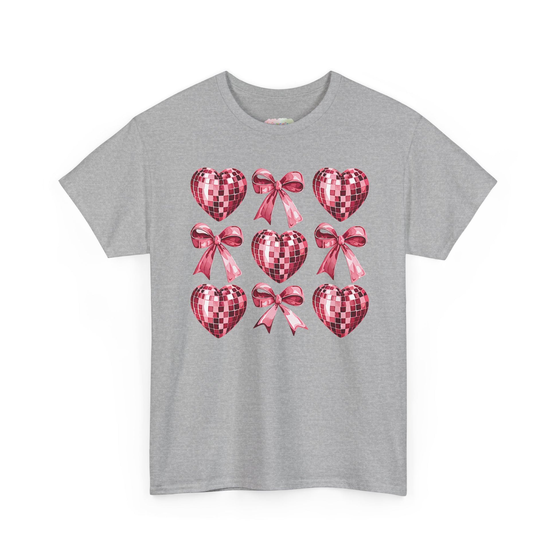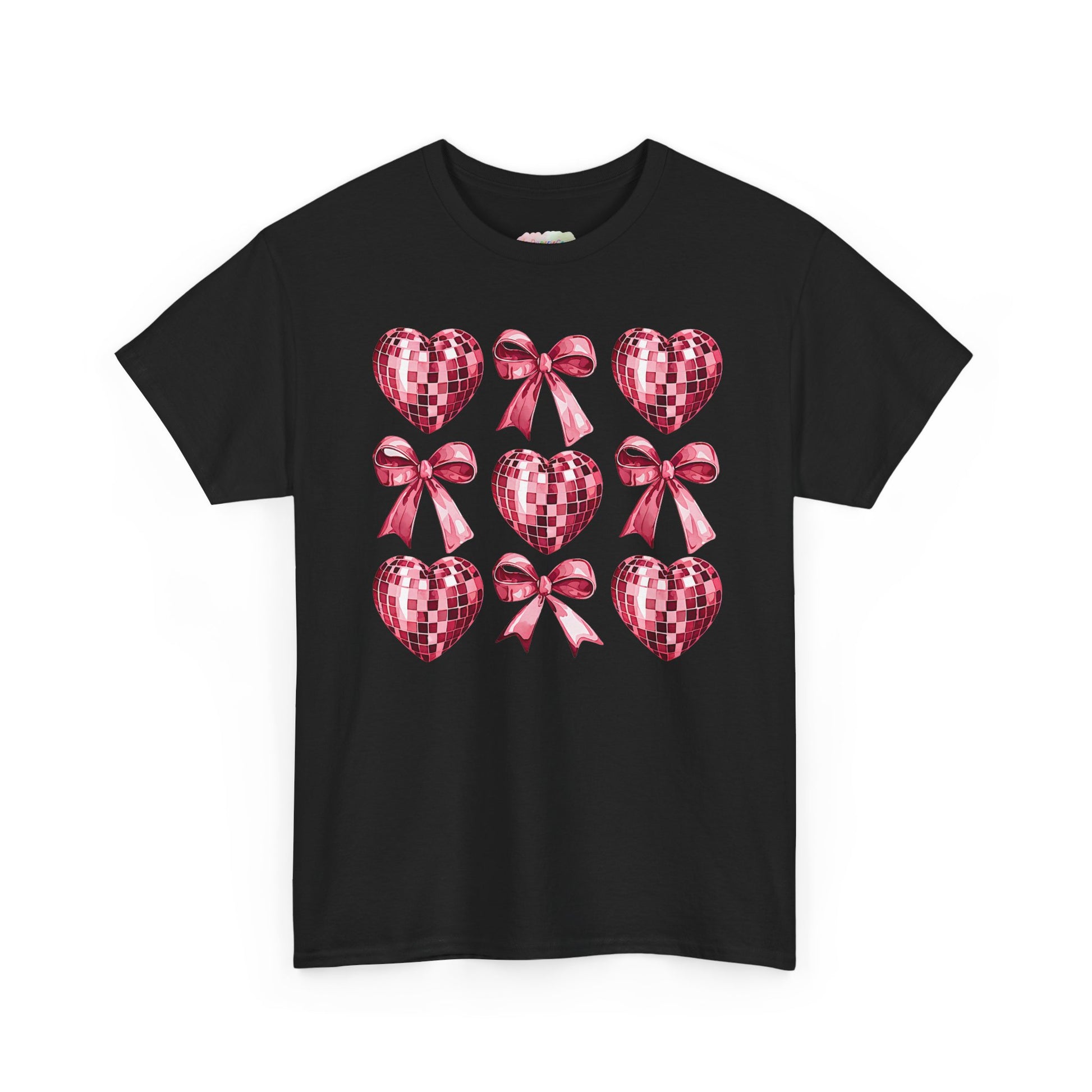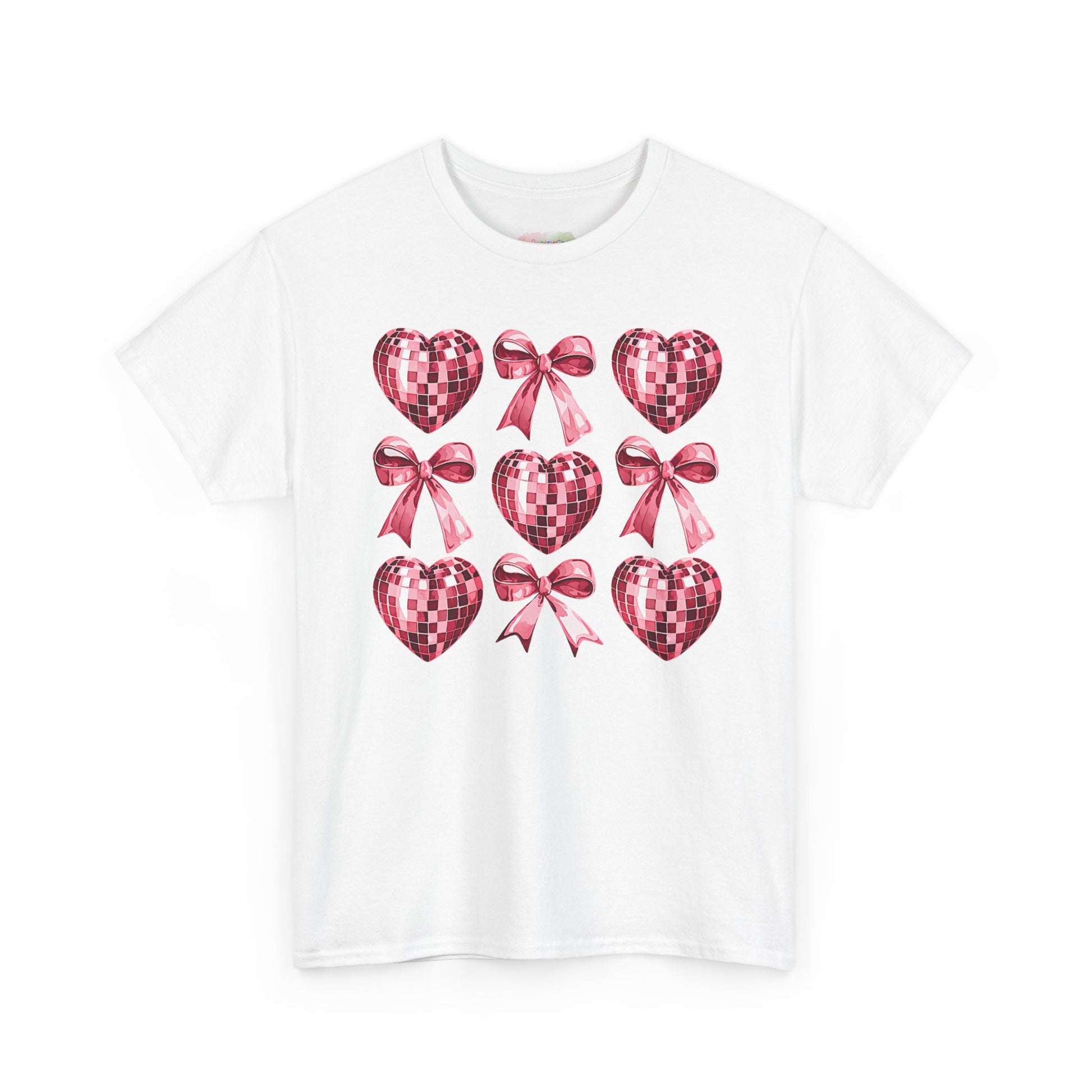 Pink Sequin Hearts & Bows T-Shirt | Valentine Heart Pattern Tee
