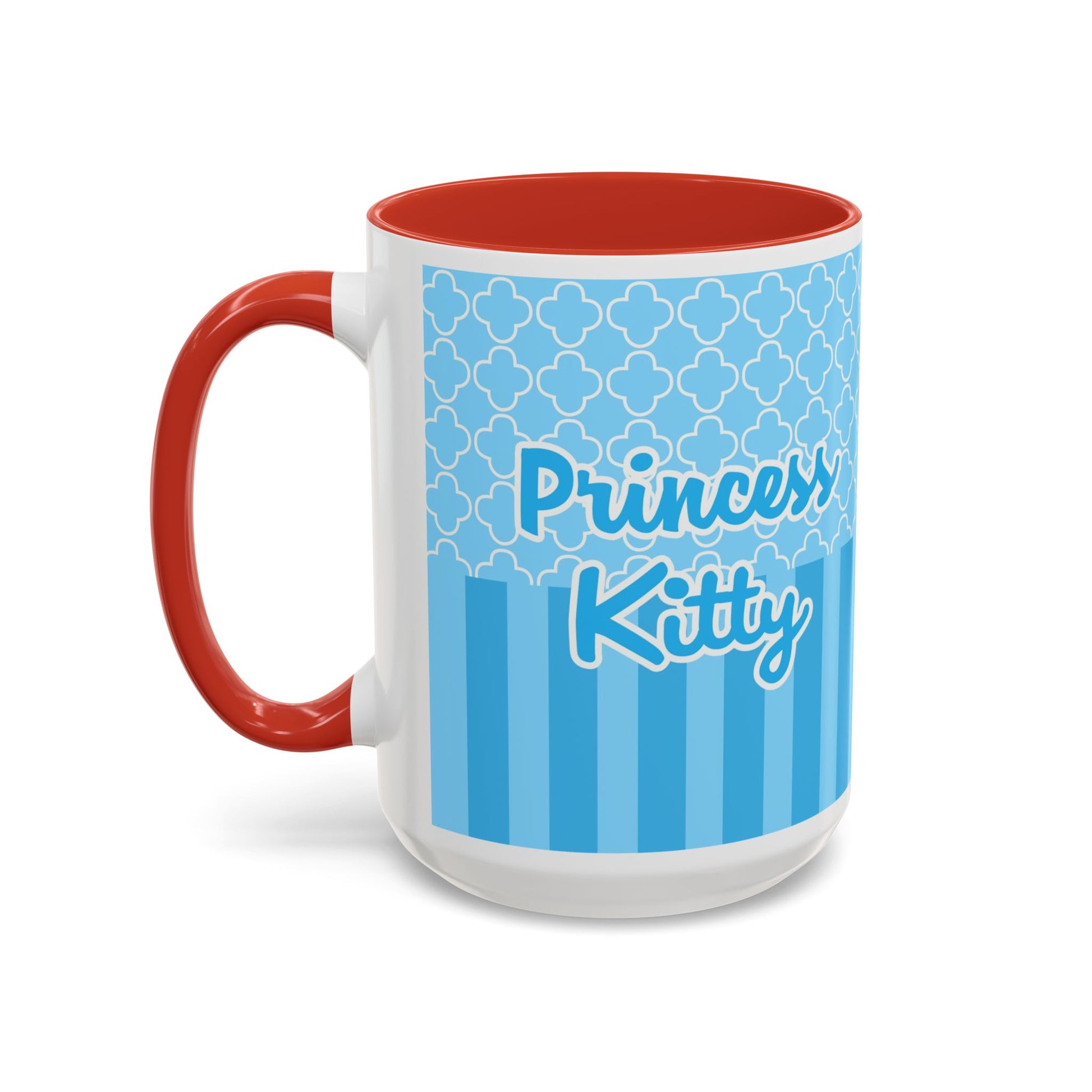 Princess Cat Illustration Accent Coffee Mug | Blue Striped Ceramic