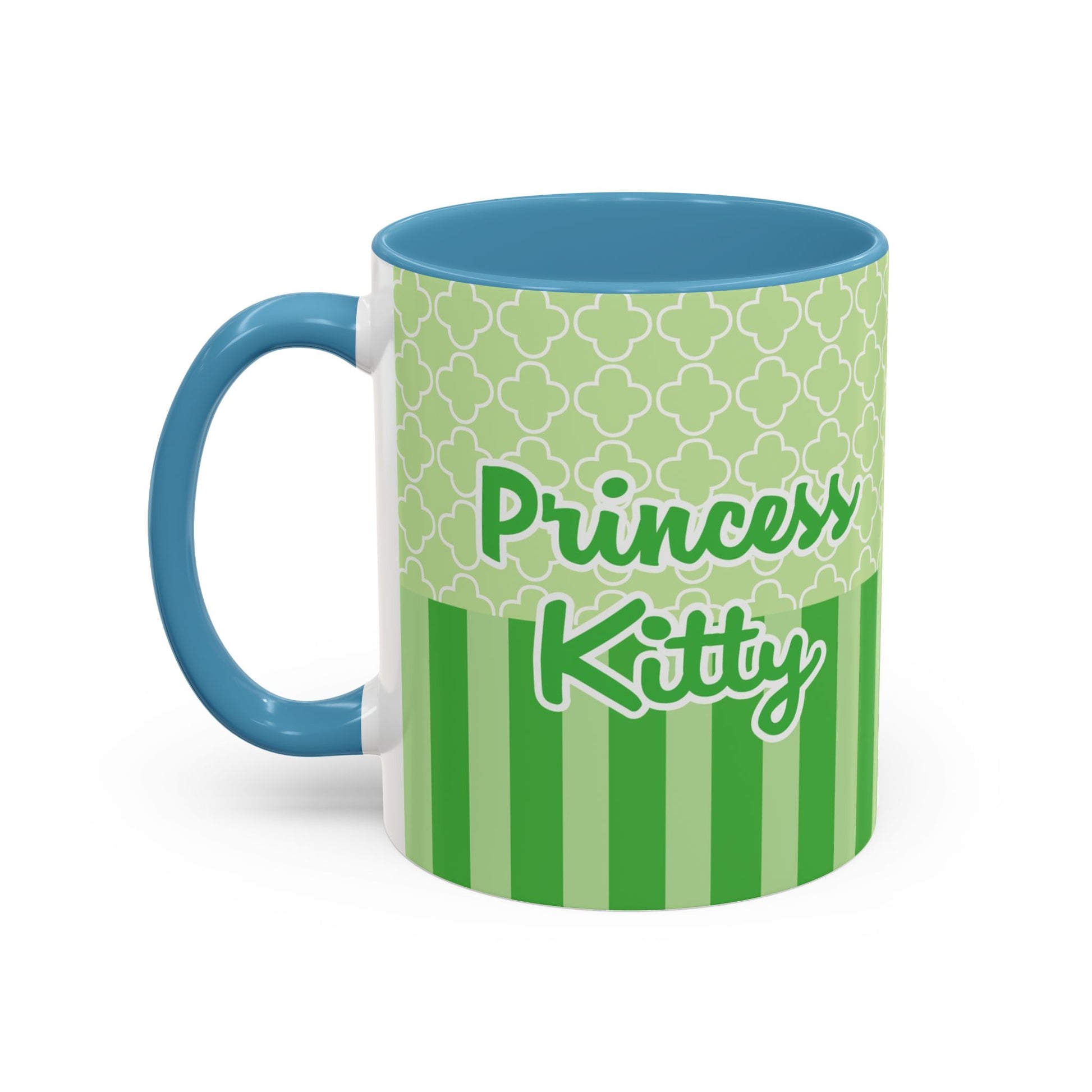 Princess Cat Illustration Accent Coffee Mug | Green Stripes