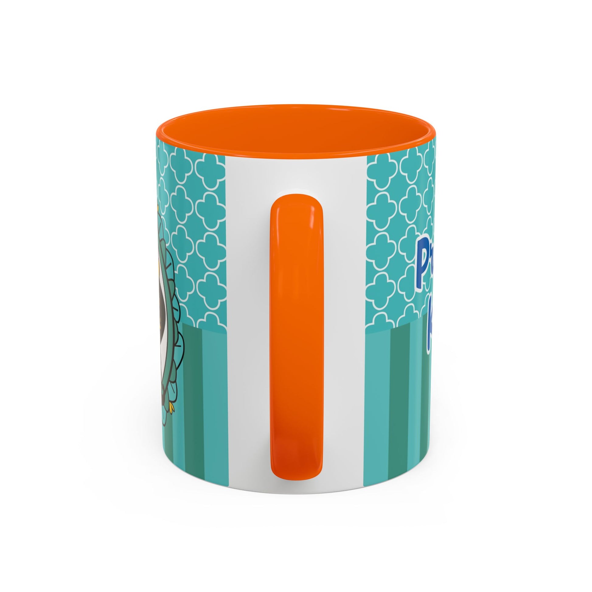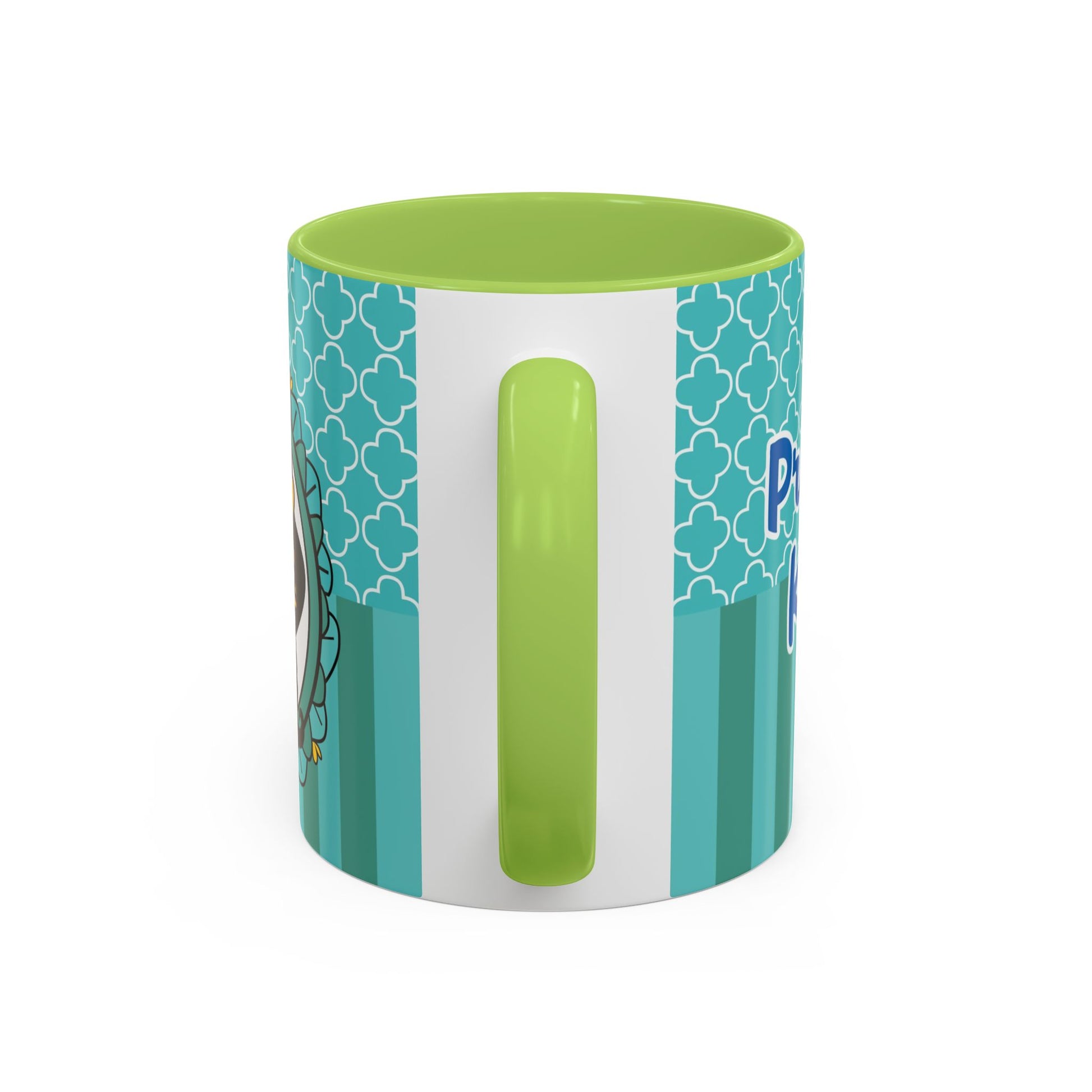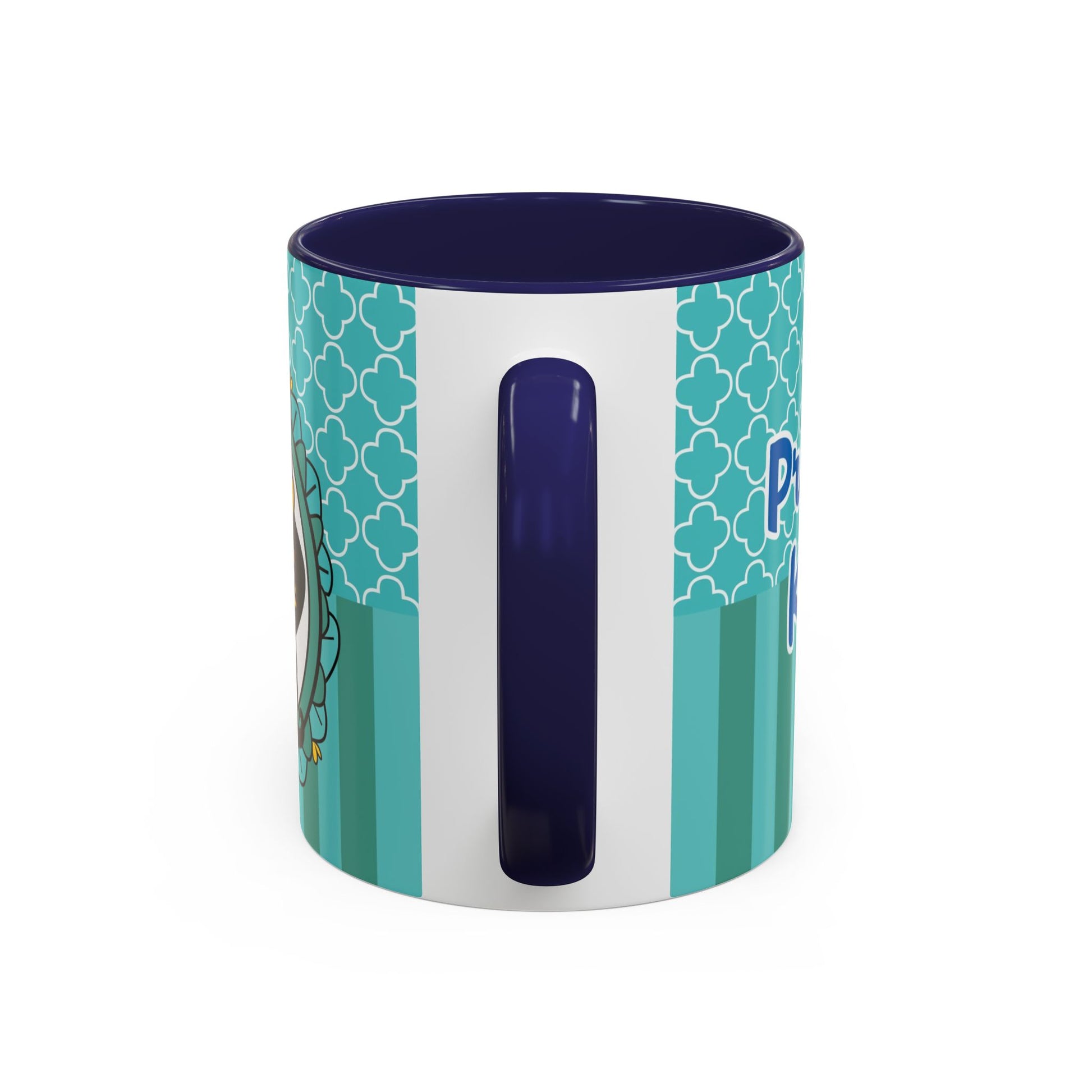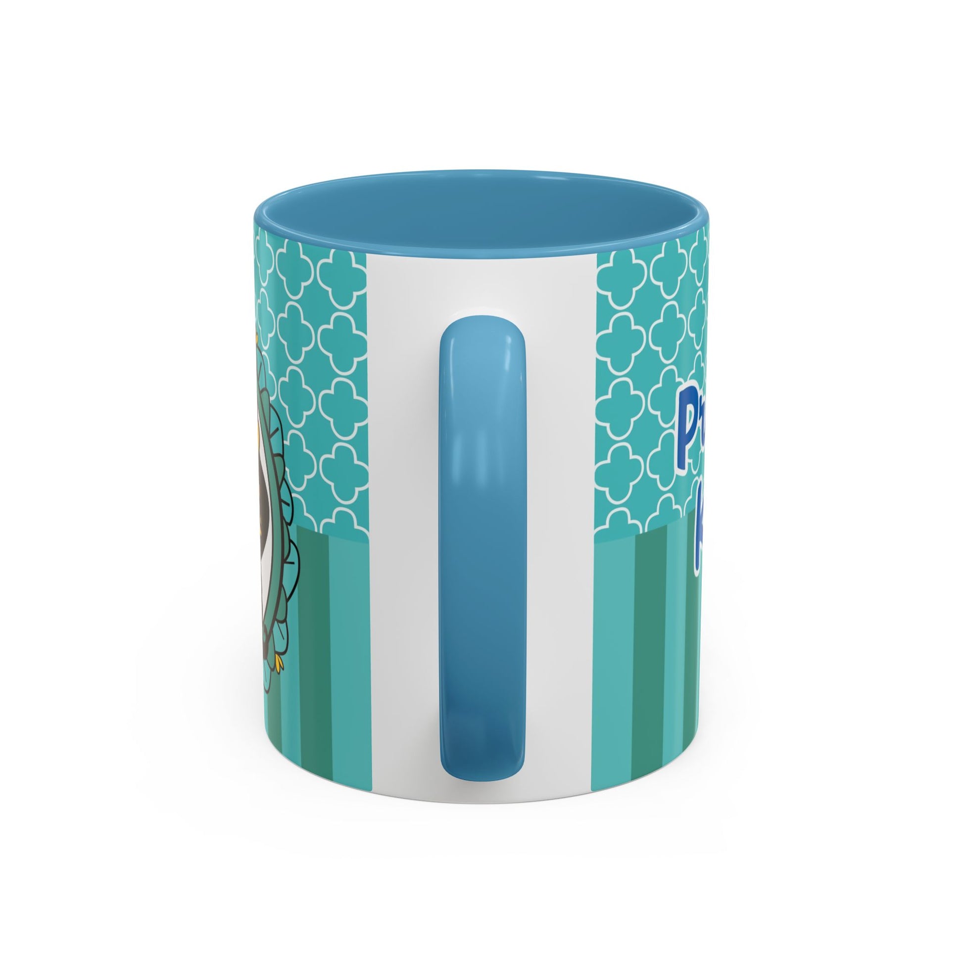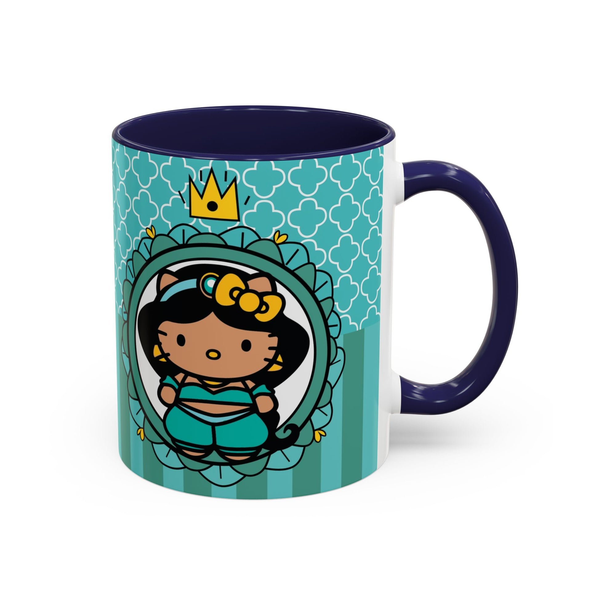 Morning coffee becomes a small, joyful ritual with this vibrant ceramic mug. The glossy white body pairs with a colored interior and handle to create lively contrast that brightens your counter. Cute, whimsical art wraps around the cup — a playful crown-wearing character framed by teal patterns — bringing a sense of cozy charm to slow mornings, creative breaks, or study sessions. Sturdy C-shaped handle and two size options let you choose just the right pour for early sips or long, lingering refills. Dishwasher- and microwave-safe, it blends convenience with cheerful design for everyday use.