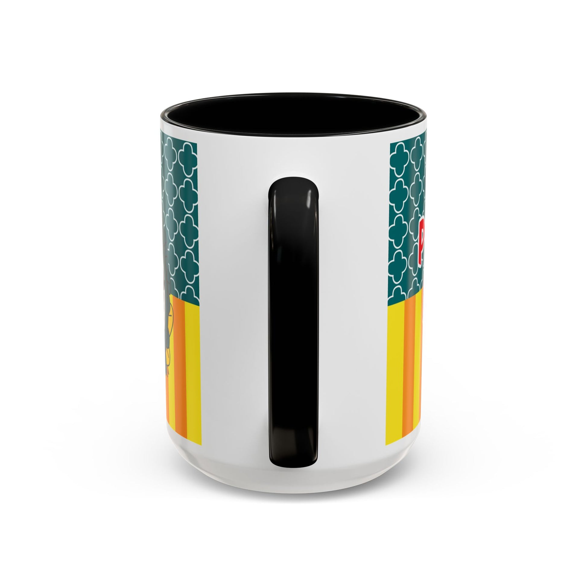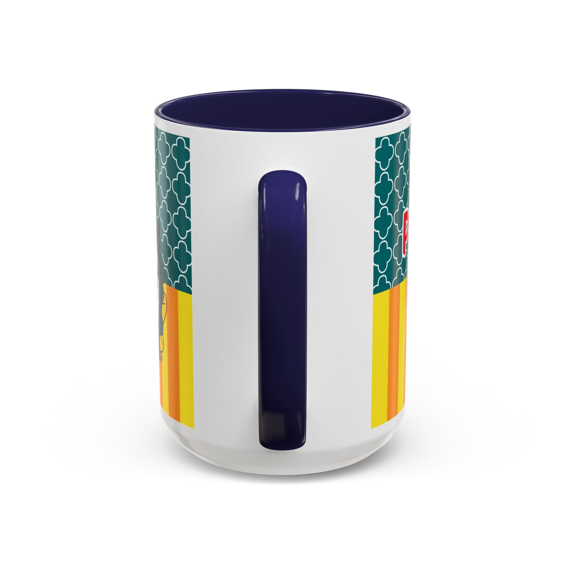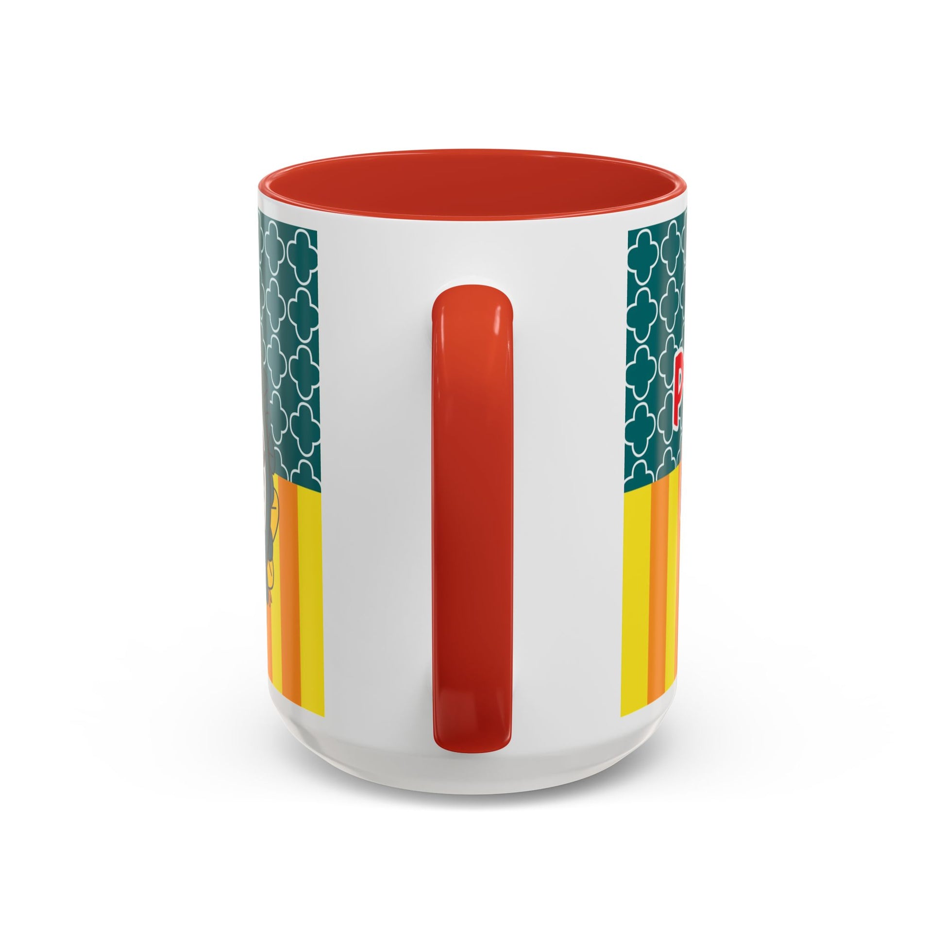 - White ceramic with colored interior and C-shaped handle