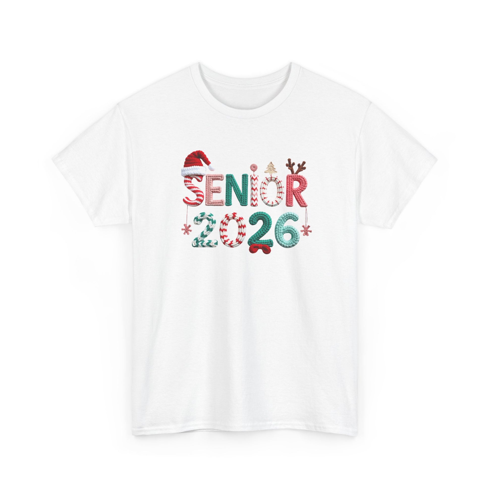 Celebrate final-year pride with a cozy, festive tee that speaks to late-night study sessions and holiday-season memories. This classic crew shirt carries a playful holiday-themed “Senior 2026” design—complete with candy-cane stripes, holly, a Santa hat, and seasonal accents—so it looks spirited at school events, family gatherings, and end-of-year parties. Lightweight but durable, the cotton fabric holds print detail nicely and wears comfortably during layering or on its own. Wear it to graduation fundraisers, winter pep rallies, or while wrapping gifts with friends—this shirt brings a warm, nostalgic vibe to the moments that matter most in a senior year.