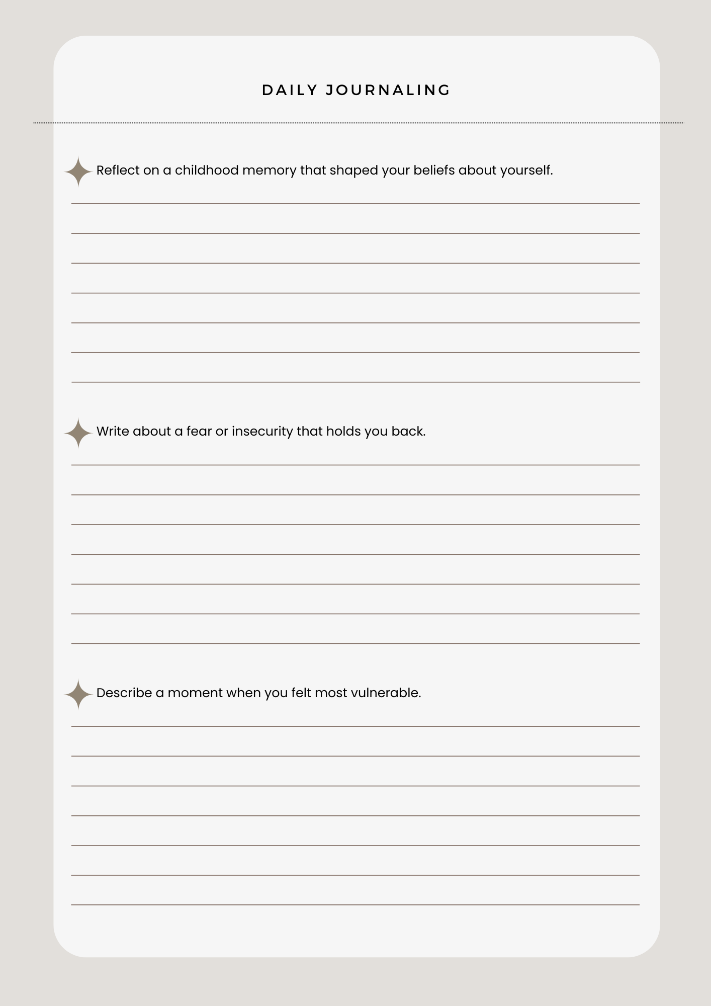 Embark on a transformative journey of self-discovery with the Shadow Work Journal. Designed to help you explore the hidden parts of yourself, this journal provides a safe space to confront and embrace your inner shadows. Filled with guided prompts, reflective exercises, and empowering questions, it encourages you to delve deep into past experiences, beliefs, and emotions that shape your true self. Whether you're seeking healing, growth, or greater self-awareness, the Shadow Work Journal is your trusted companion for uncovering inner truths and fostering emotional freedom. Embrace your whole self and step into the light.