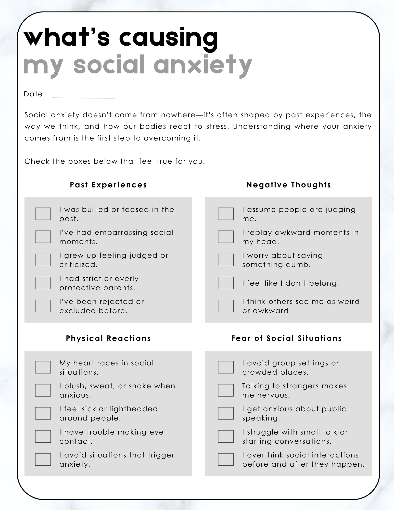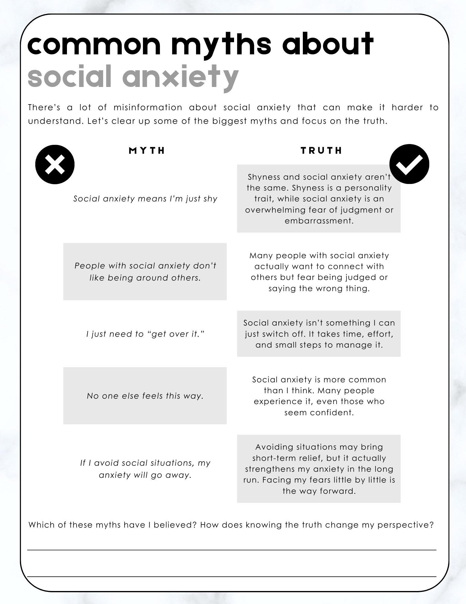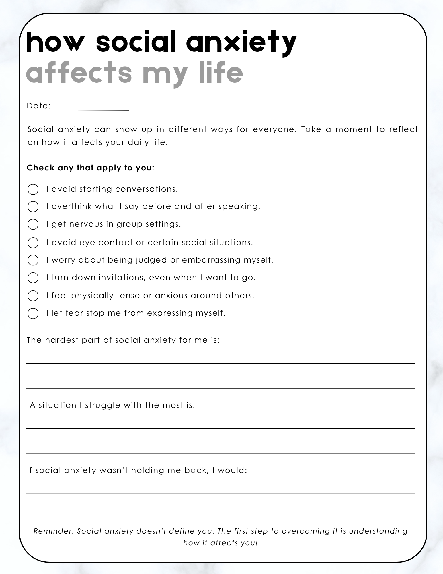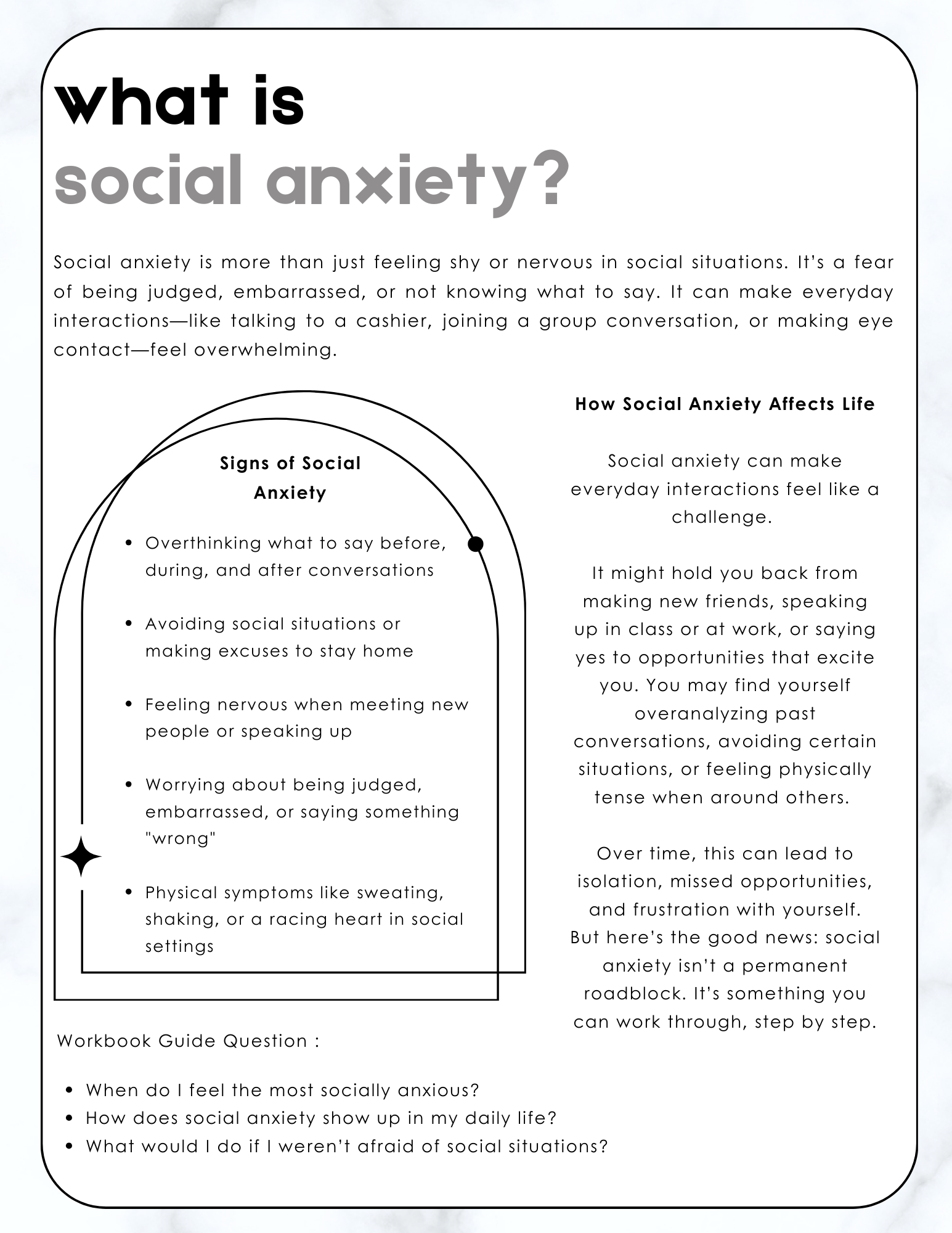 The Social Anxiety Relief Workbook is a compassionate and practical guide designed to help individuals overcome social anxiety and regain confidence in social situations. Through evidence-based exercises, gentle prompts, and proven strategies, this workbook empowers you to identify triggers, challenge negative thoughts, and develop healthier social habits. Whether you're seeking to reduce feelings of nervousness, improve communication skills, or build meaningful connections, The Social Anxiety Relief Workbook provides step-by-step guidance to support your journey toward greater emotional freedom and social ease. Start your path to confidence today and embrace a more relaxed, authentic life.