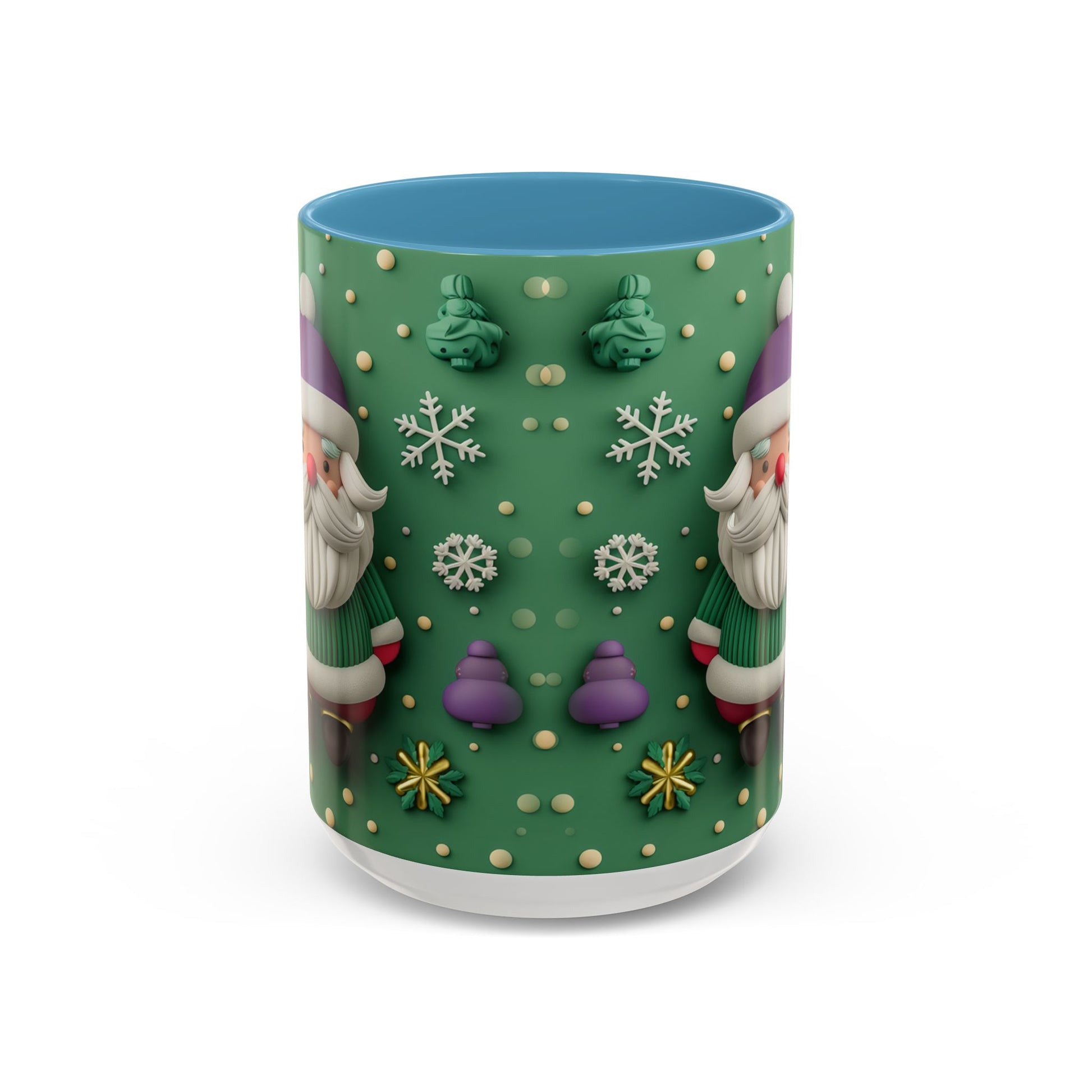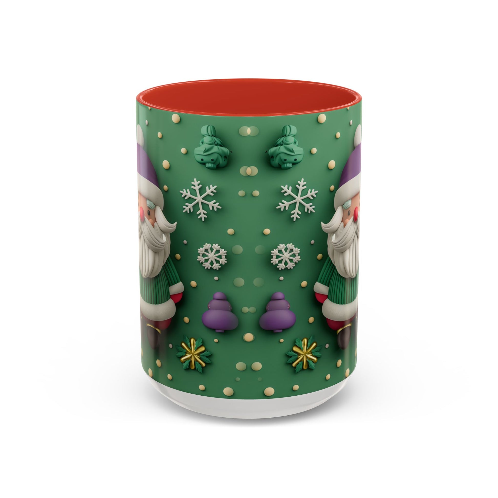 Whimsical Santa Pattern Accent Coffee Mug | Christmas Santa Snowflakes 11oz 15oz
