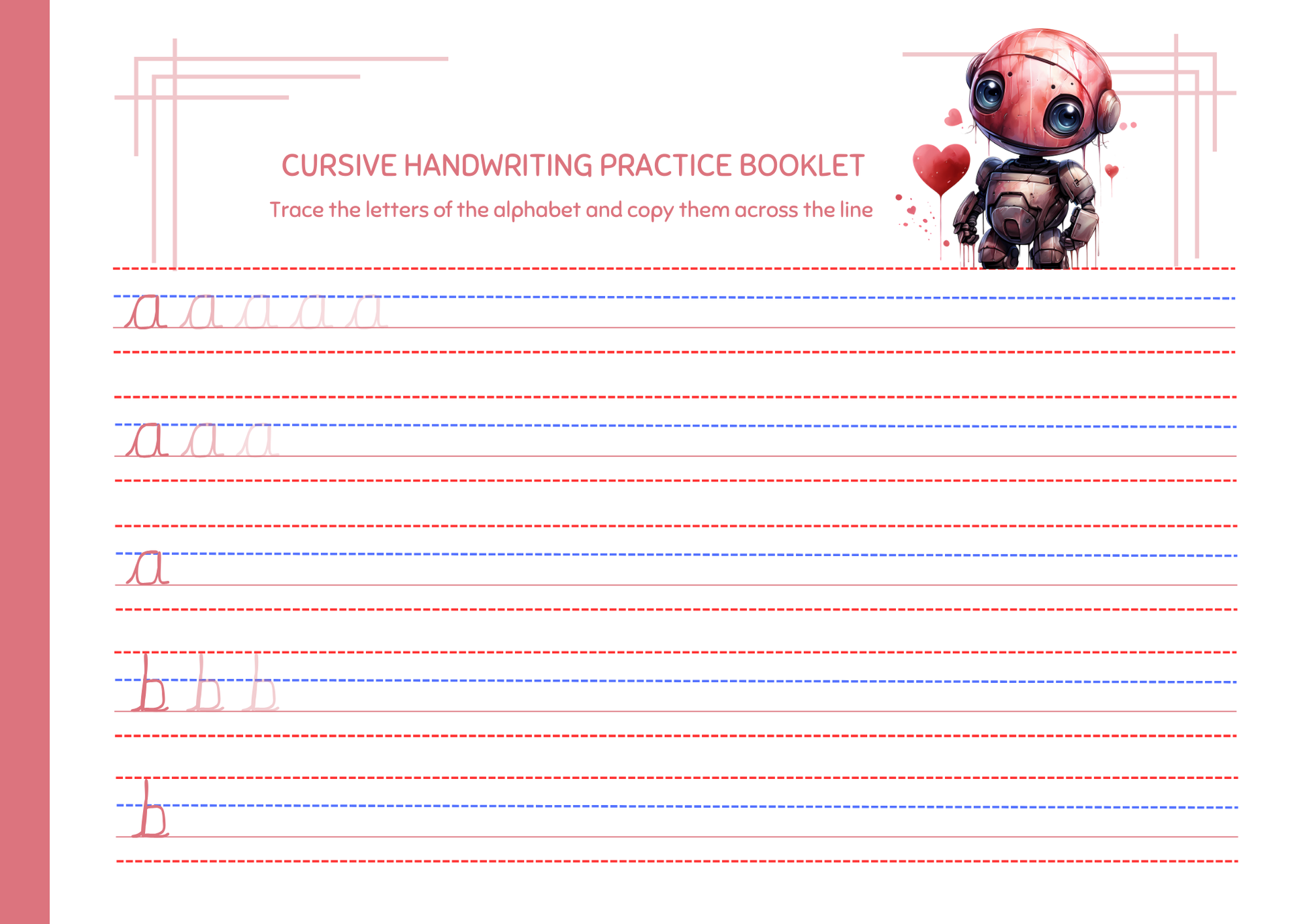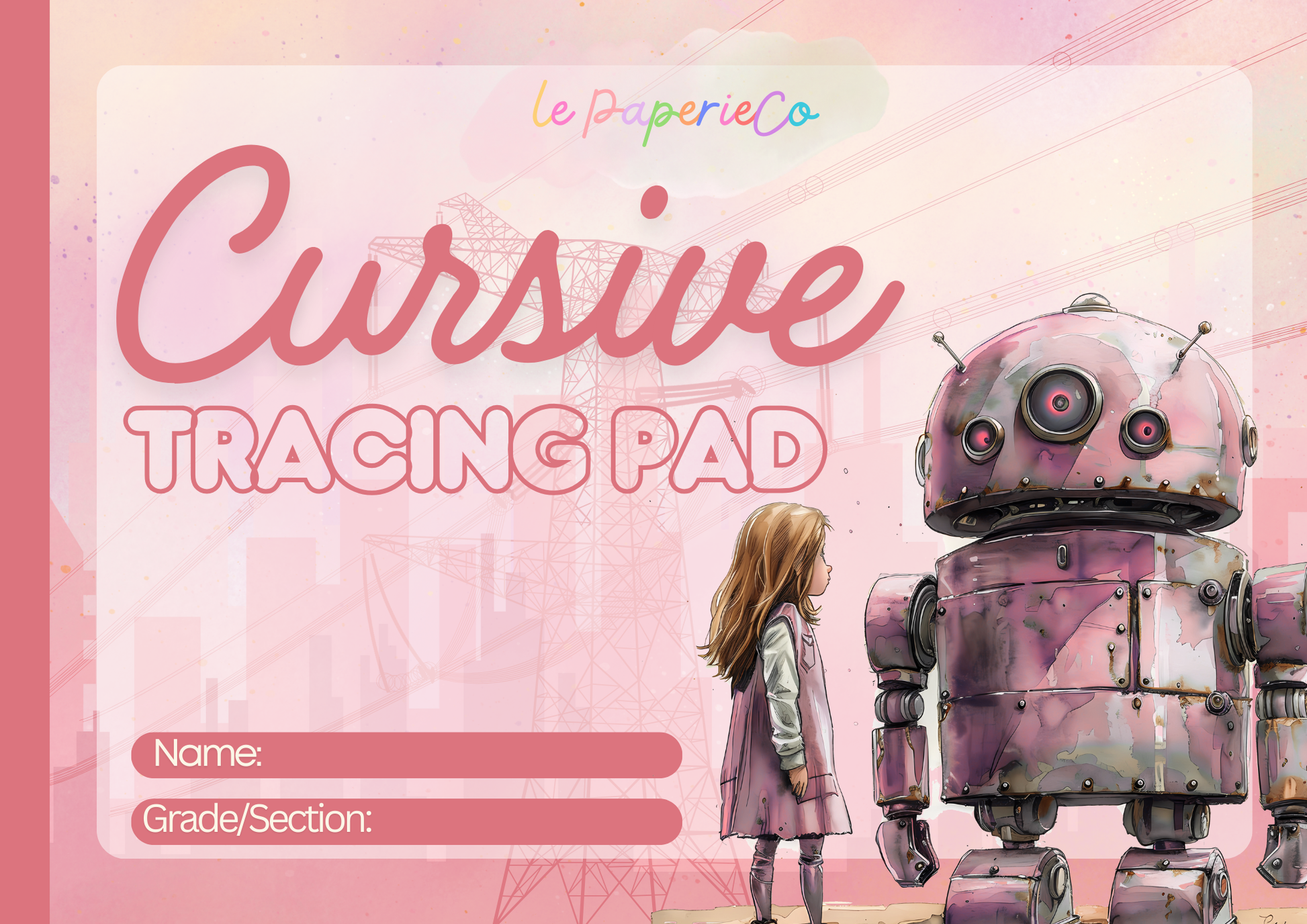 Cursive Letter Tracing Pad - Pink Robot Theme | Digital Download